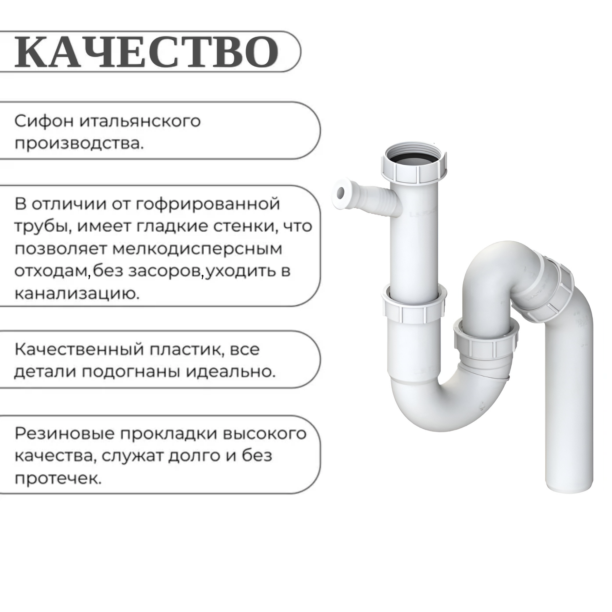 | Состав | гайка / гидрозатвор / декоративная накладка / заглушка / отвод для бытовой техники / прокладка / сифон / труба сливная / уплотнительное кольцо конусовидное |