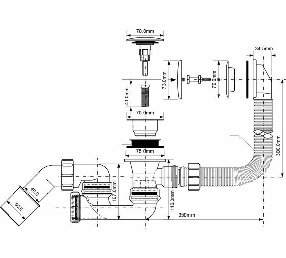 | Диаметр выпуска | 1 1/2" / 40 мм / 50 мм / 52 мм / 70 мм |
