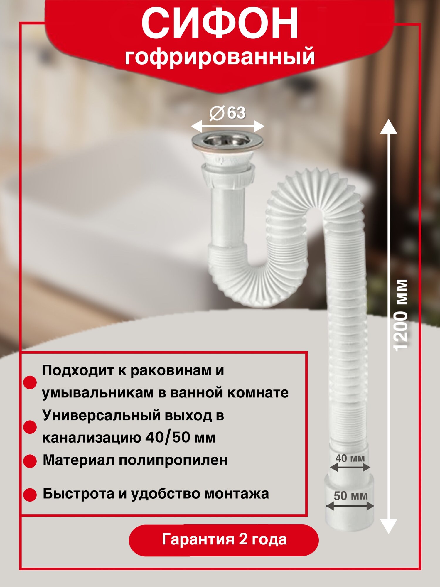 | Конструкция сифона | гофрированный |
