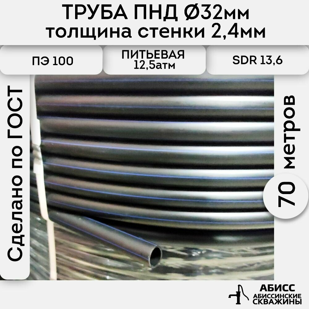 СохранитьТруба ПНД 32х2,4. длина 70метров. толщина стенки 2,4мм. водопроводная питьевая напорная (12,5атм) ПЭ100, SDR13,6 ГОСТ18599-2001 интересное: