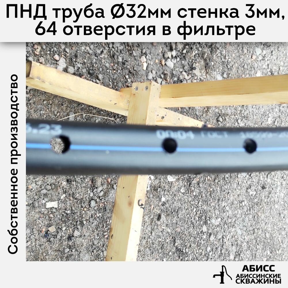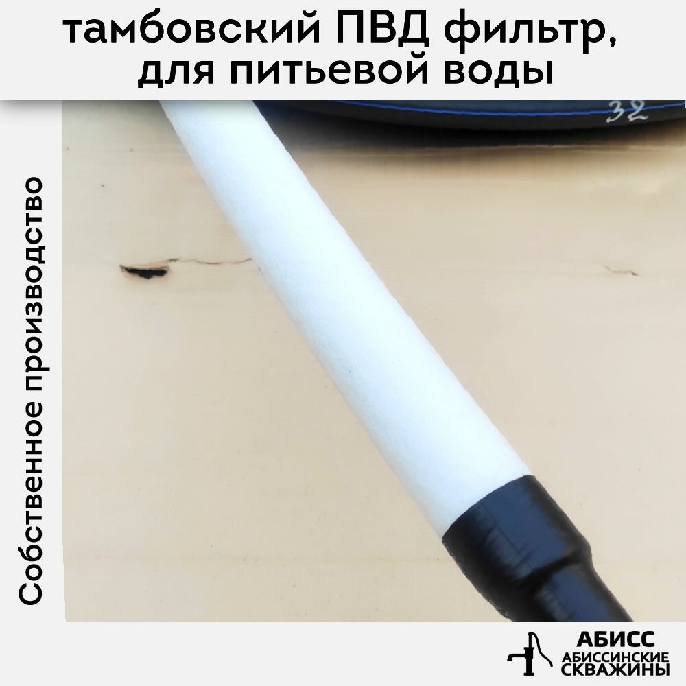 Комплект обсадки 15м, для абиссинской скважины выполненной гидробурением - фильтр ПВД (чулок) смонтирован на перфорированную трубу ПНД 32мм стенка 3мм интересное: