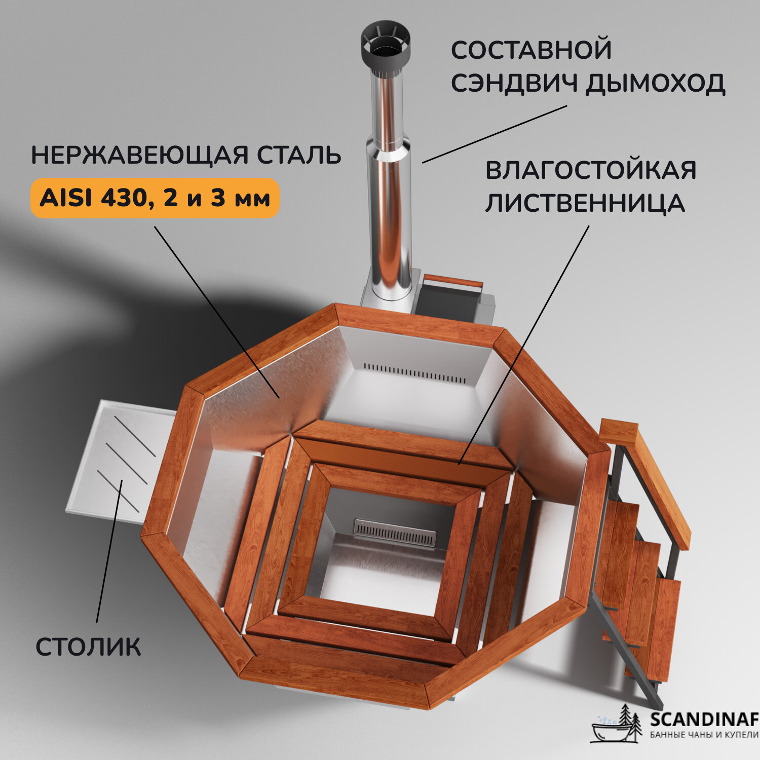 Банный чан на дровах SCANDINAF Diamond 185 см, 4-6 чел. интересное: