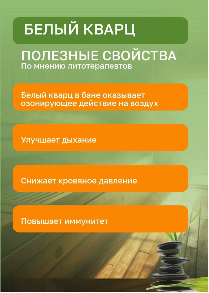 Белый кварц шлифованный озоновый ЖадеБест средняя фракция 7-12 см для бани и сауны 10 кг в экологичной упаковке интересное: