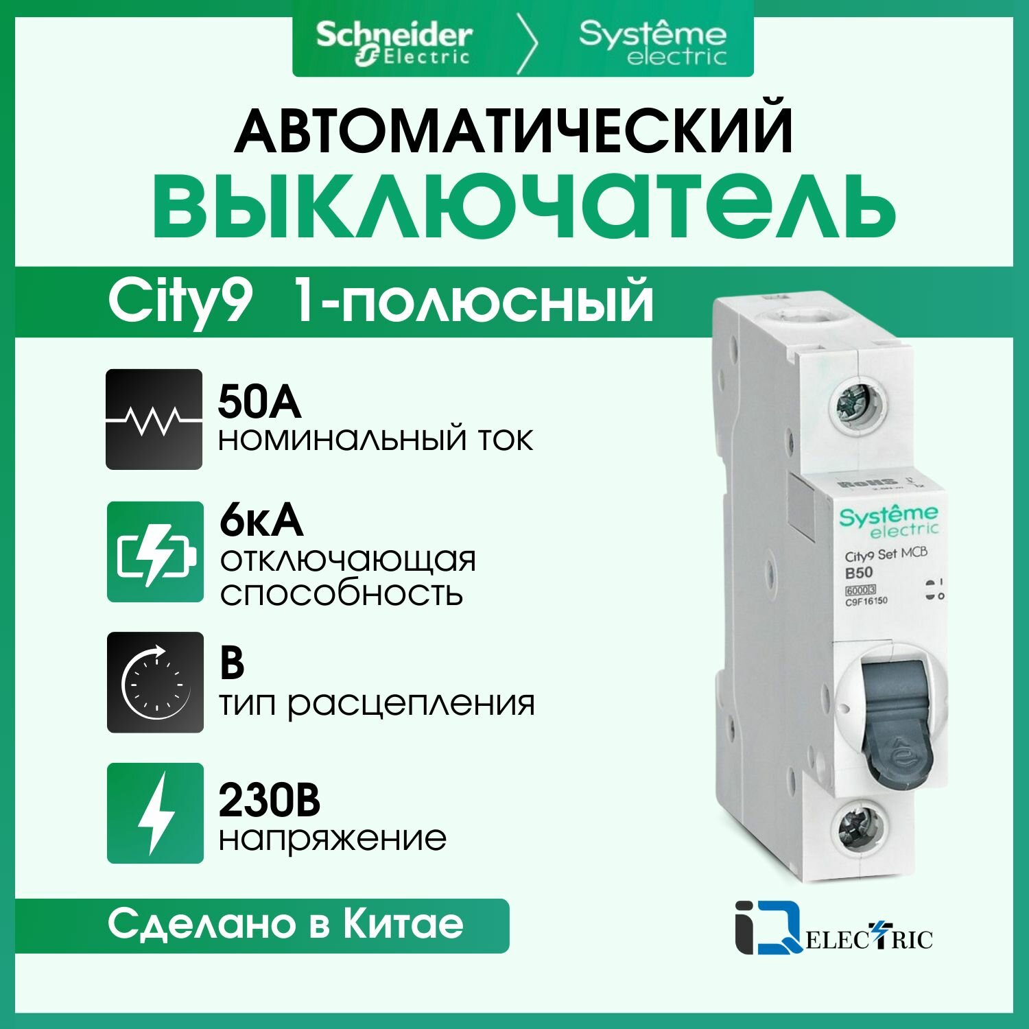 Выключатель автоматический 1P Тип-B 50А 6kA City9 Set Systeme Electric C9F16150