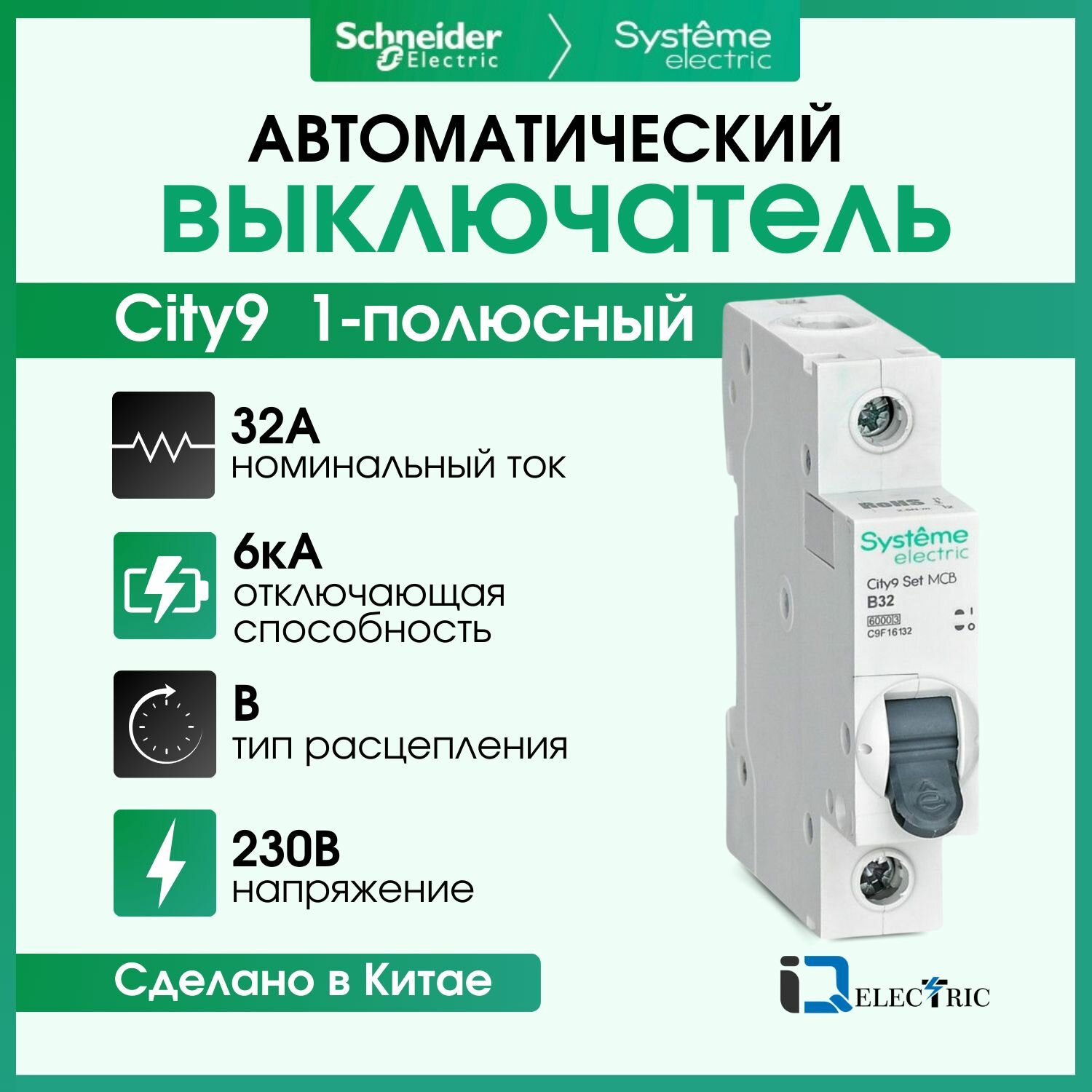 Купить Выключатель автоматический 1P Тип-B 32А 6kA City9 Set Systeme Electric C9F16132