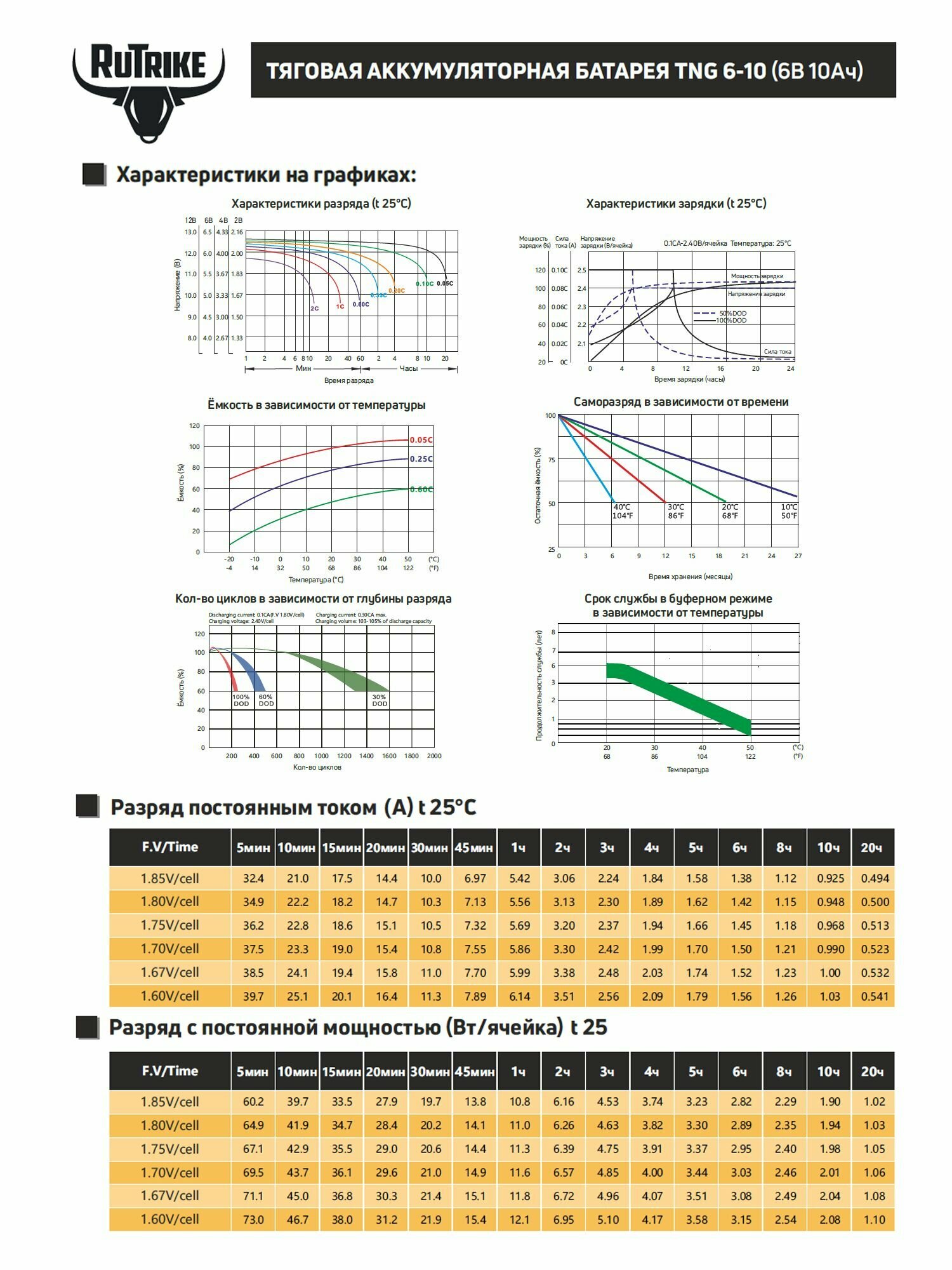 Тяговый аккумулятор RuTrike TNG6-10 6V 10Ah интересное: