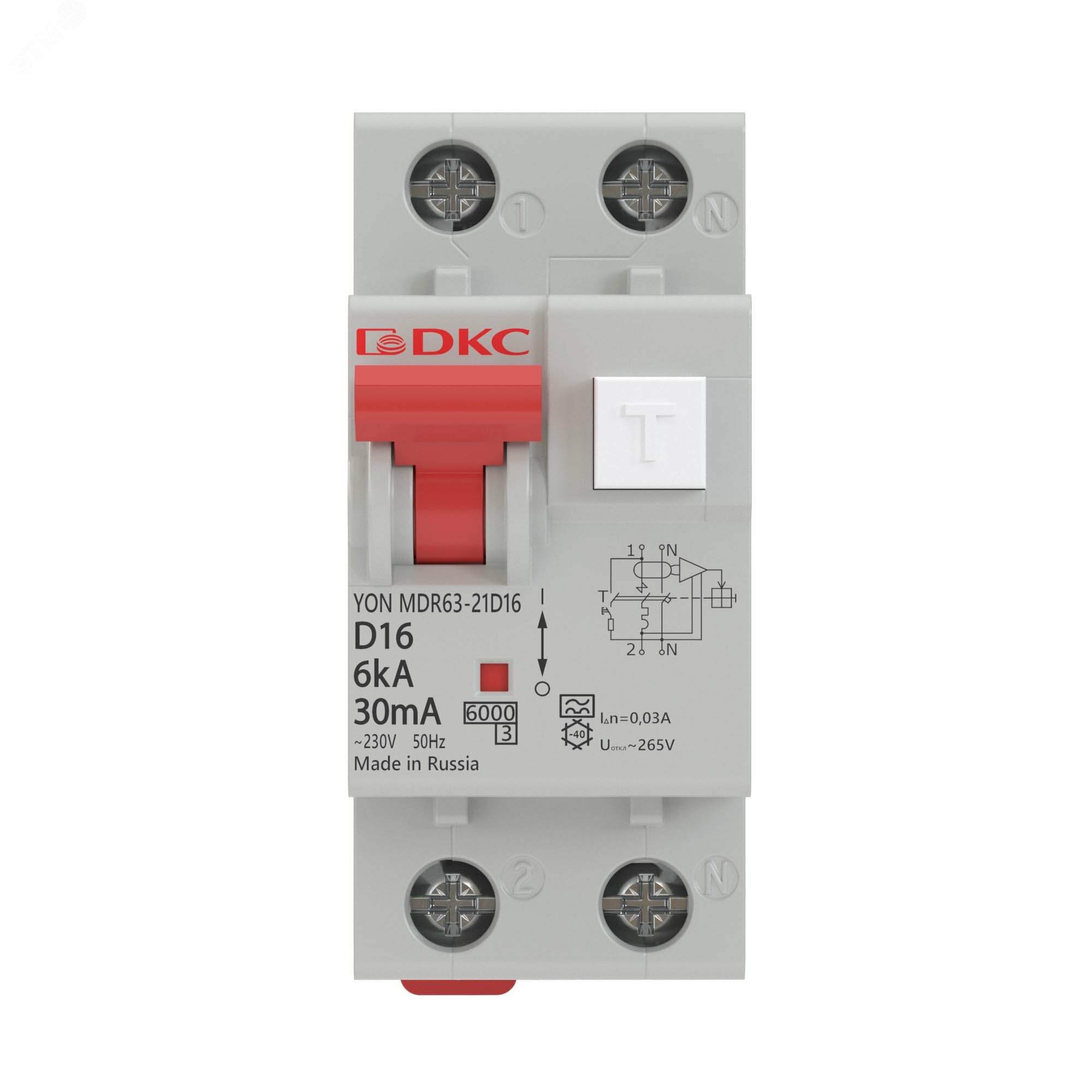 Выключатель автоматический дифференциального тока с защитой от сверхтоков YON MDR63-22C6-A 2п 30мА MDR63-22C6-A, DKC MDR6322C6A (1 шт.)