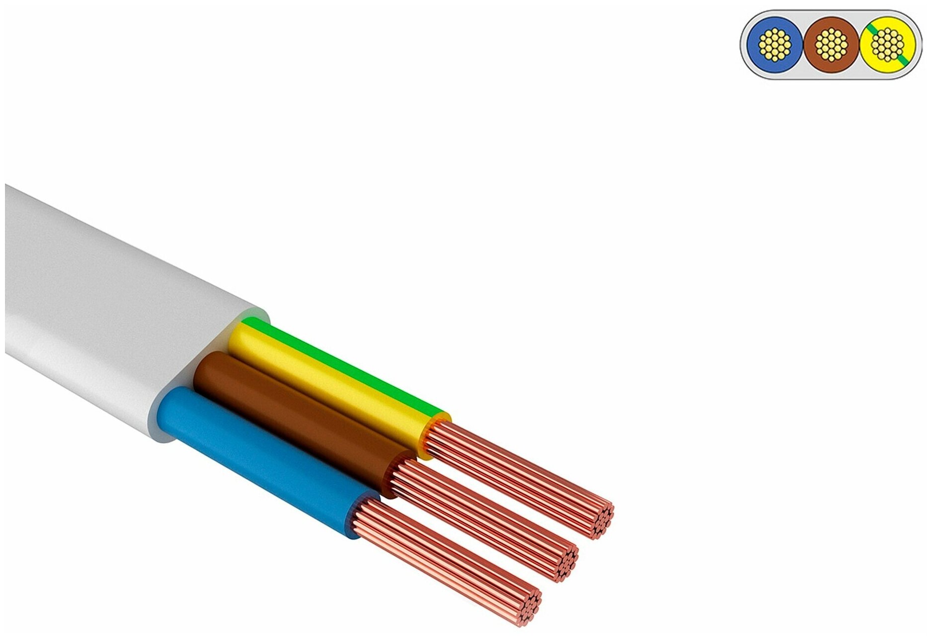 Кабель "Кабель ГОСТ" ШВВП 3х0,75 ГОСТ плоский белый 100метров бухта