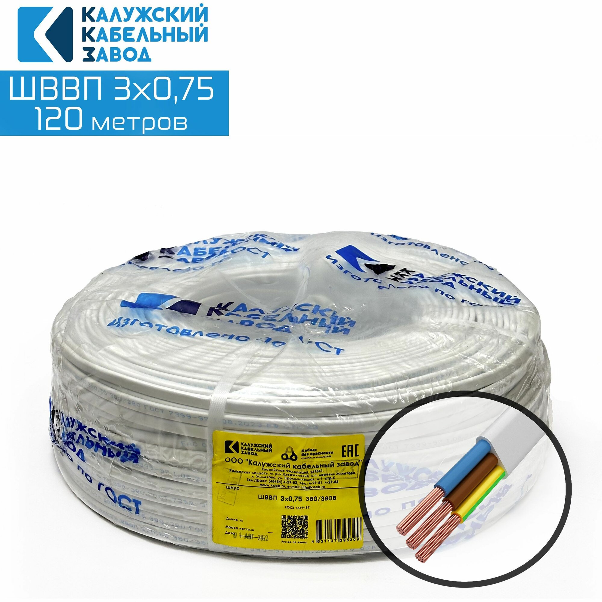 Купить Электрический Кабель ШВВП 3х0,75 120метров ГОСТ Калужский кабельный завод Белый.