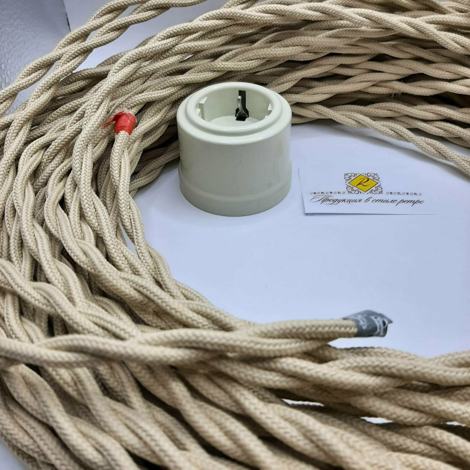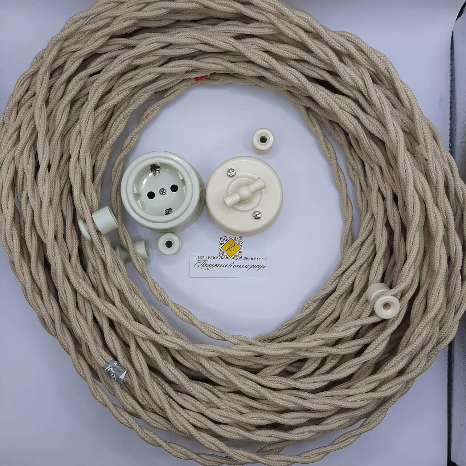 Витой ретро провод 2х1,5 матовый, 1 м/уп., цвет: слоновая кость интересное:
