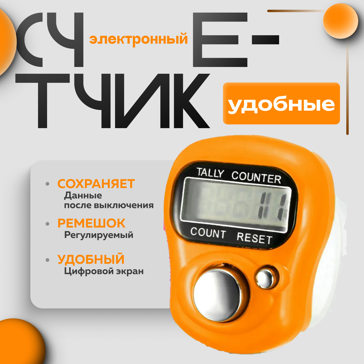 Электронный ручной счетчик нажатий Smartron-175 оранжевый интересное: