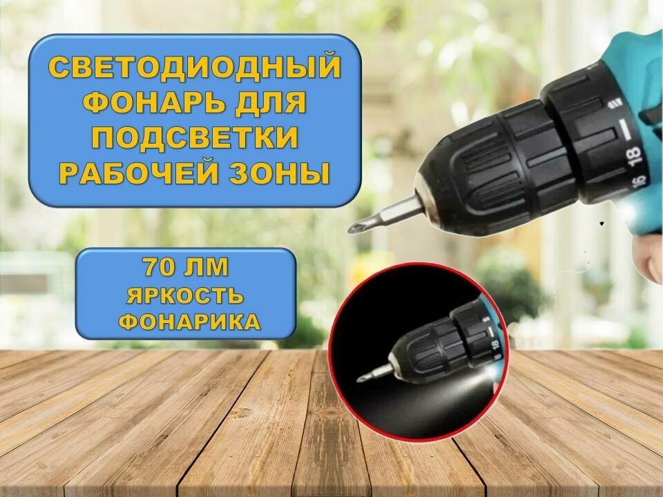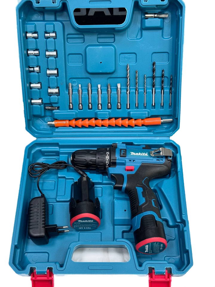 Аккумуляторная дрель-шуруповерт, с кейсом и набором инструментов, 18V интересное: