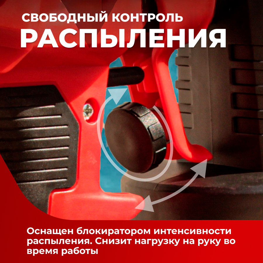 | Особенности | регулировка диаметра сопла, регулировка подачи материала |