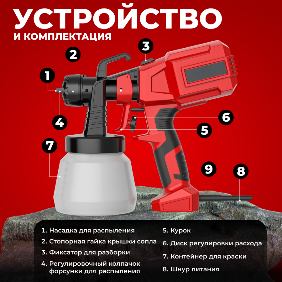 Краскопульт электрический сетевой Enstroll для покраски интересное: