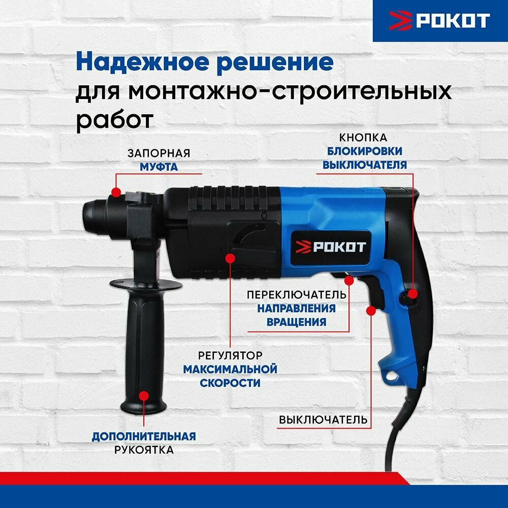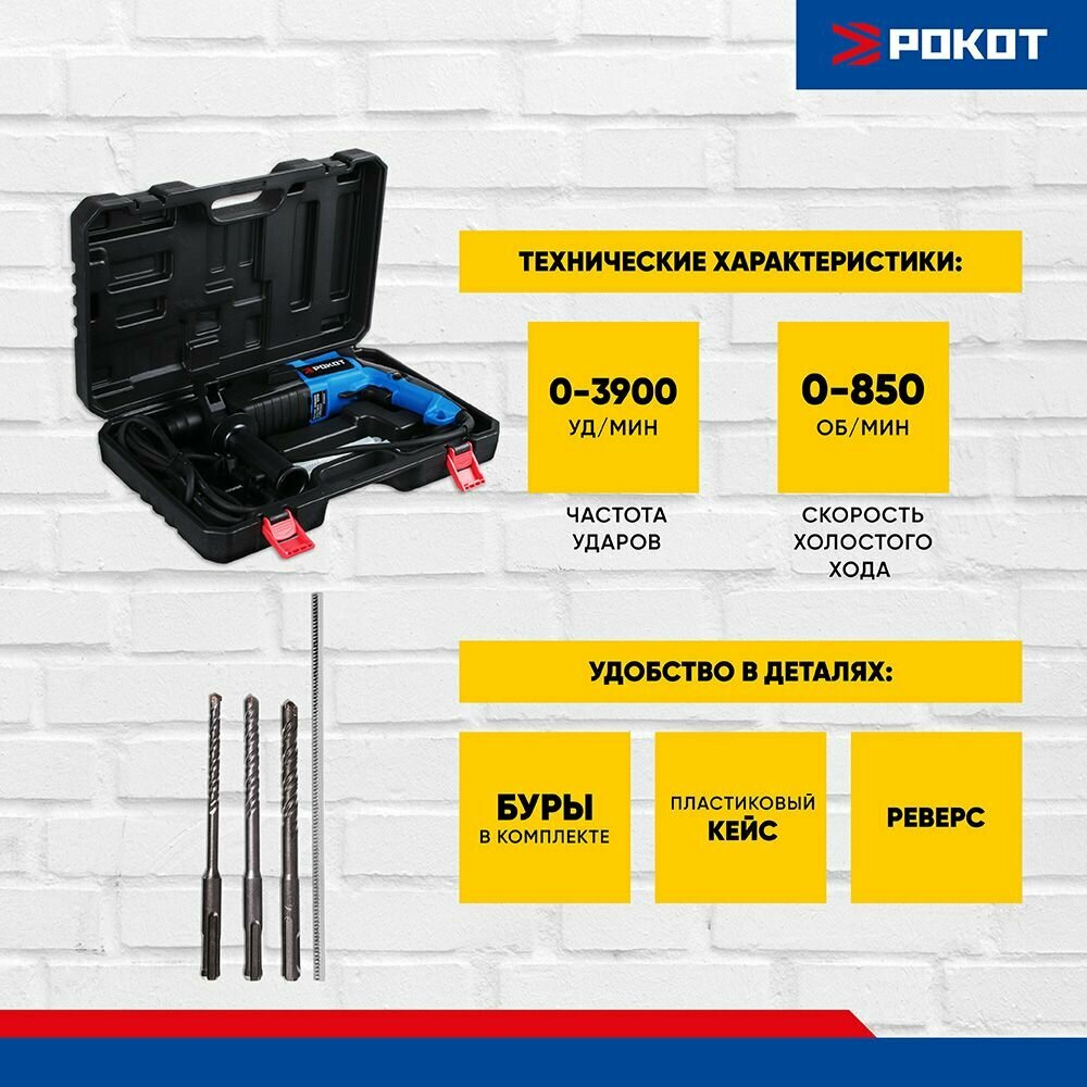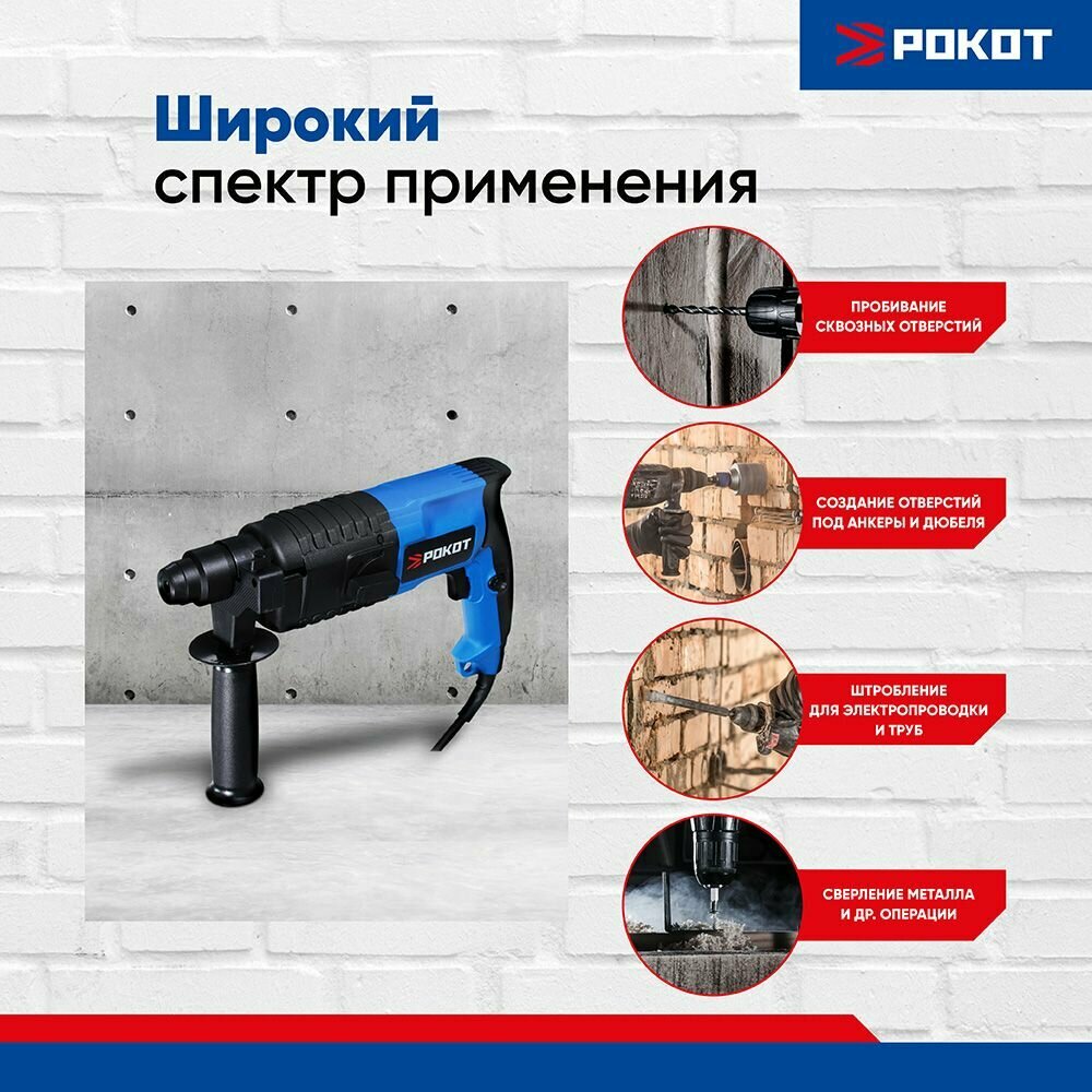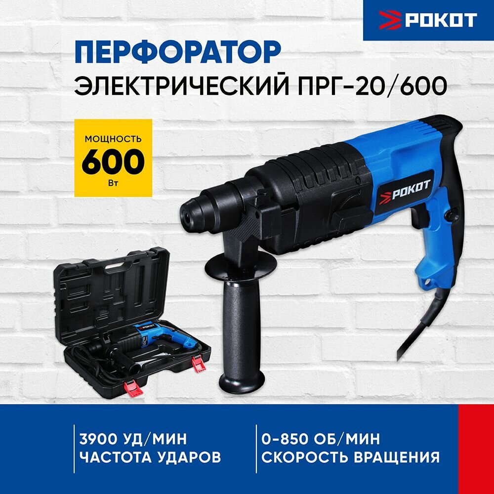 Электрический перфоратор Рокот ПРГ-20/600, 600 Вт, горизонт., SDS plus (кейс) интересное: