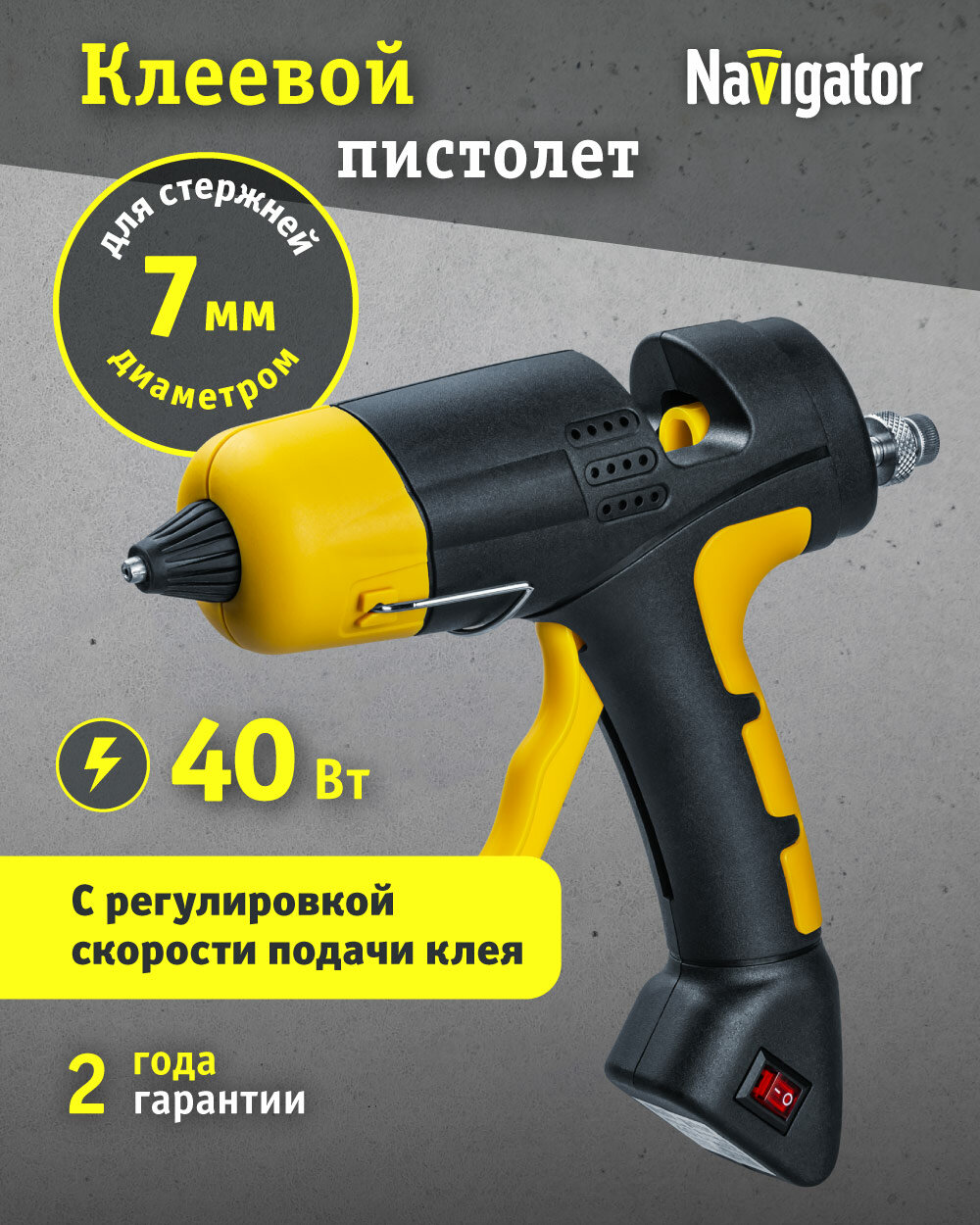 Купить Клеевой пистолет профессиональный Navigator 93 275, 40 Вт, стержень 7 мм, черный