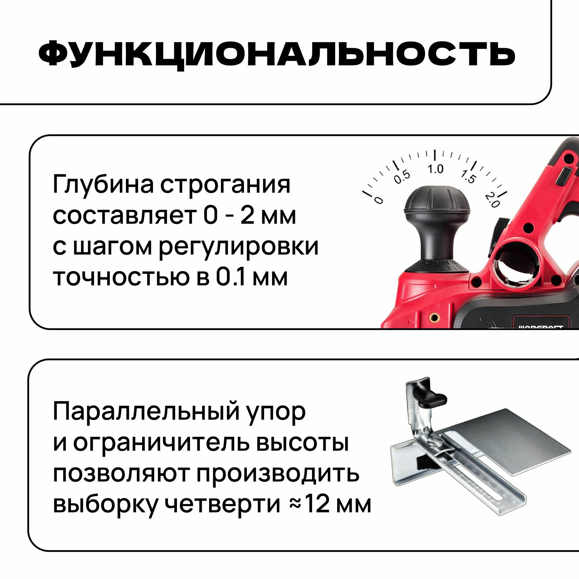 | Функции | регулировка глубины строгания |