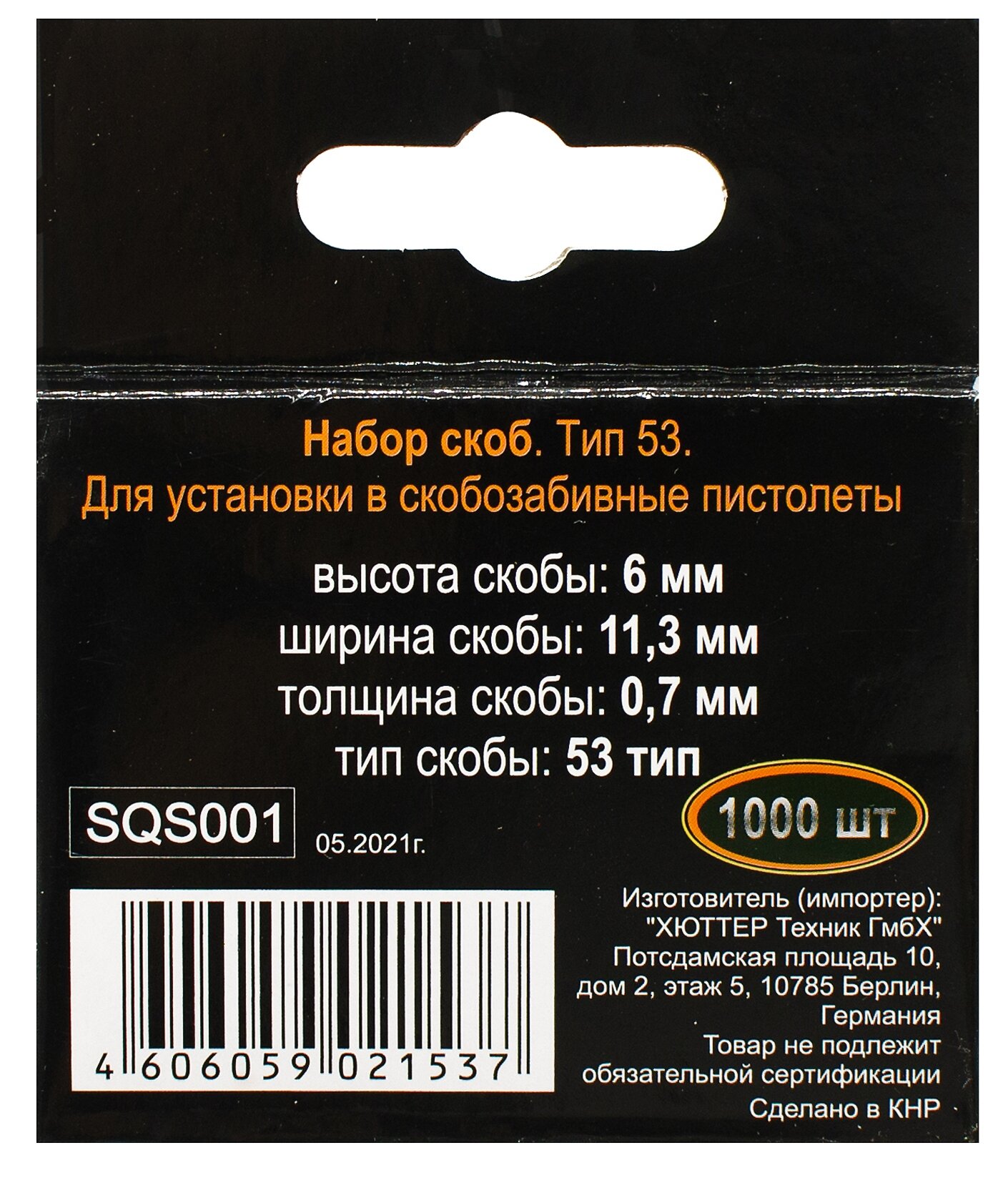 Скобы для мебельного степлера (6мм,тип скобы 53) (1000 шт.) Вихрь, , шт