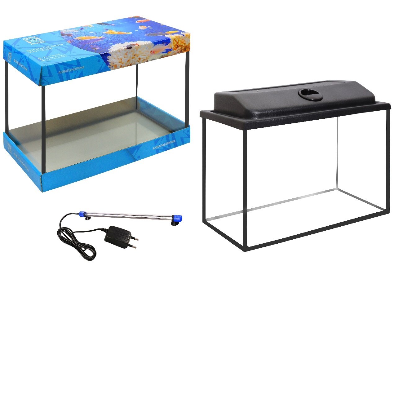 Аквариум 15л с чёрной крышкой, светодиодной лампой интересное: