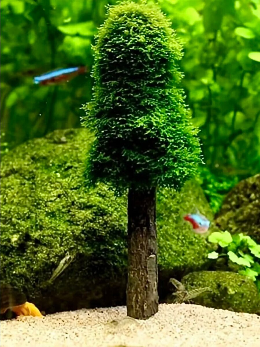 Дерево декорация для посадки мха в аквариум интересное:
