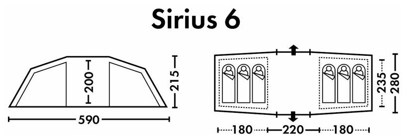 | Габариты внешней палатки(ДxШxВ) | 590x280x215 cм |