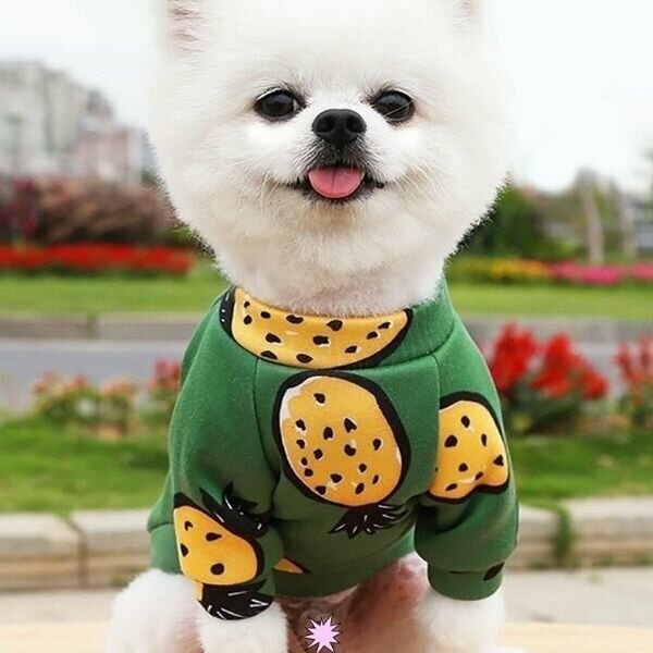 Купить Кофта - толстовка для мелких пород собак "BRO Style", ананасы, р S (на флисе) обхват груди 34 см, обхват шеи 28см, длина по спинке 26