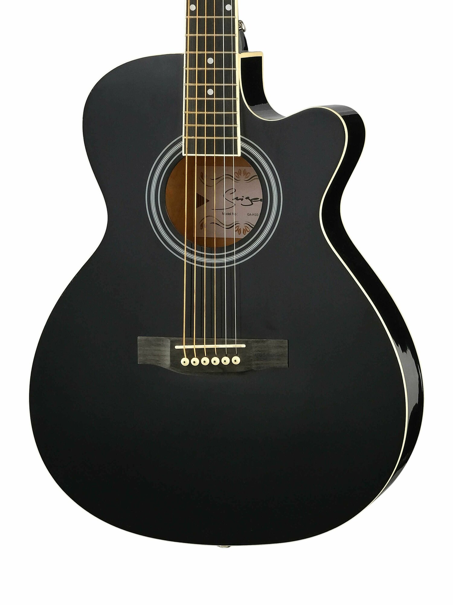 Купить Акустическая гитара, с вырезом, черная, Smiger GA-H10-39-BK