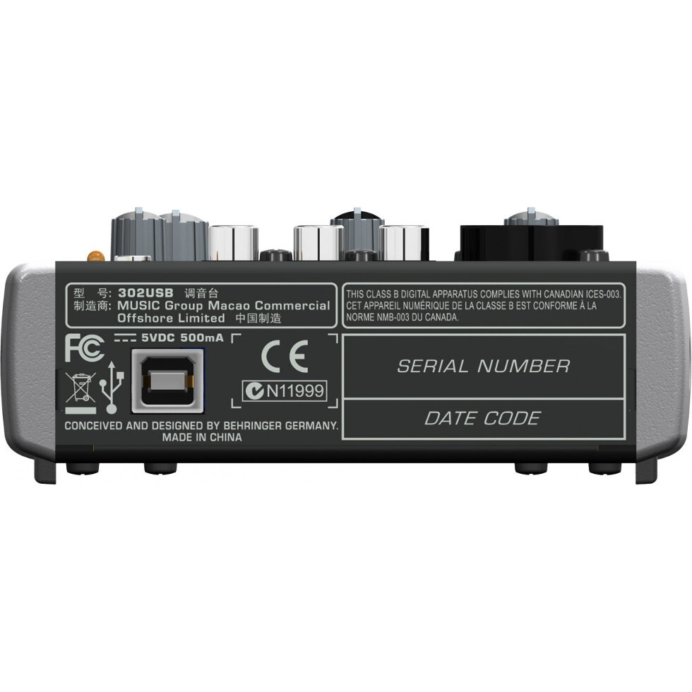 BEHRINGER 302USB микшер, 1 микрофонный моновход, 2 стерео входа, USB интерфейс