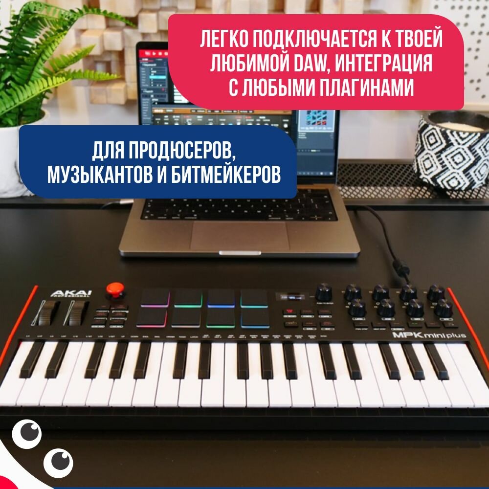 Akai Professional MPK Mini Plus / USB-контроллер MIDI-клавиатуры с 37 мини-клавишами, 8 пэдами MPC интересное: