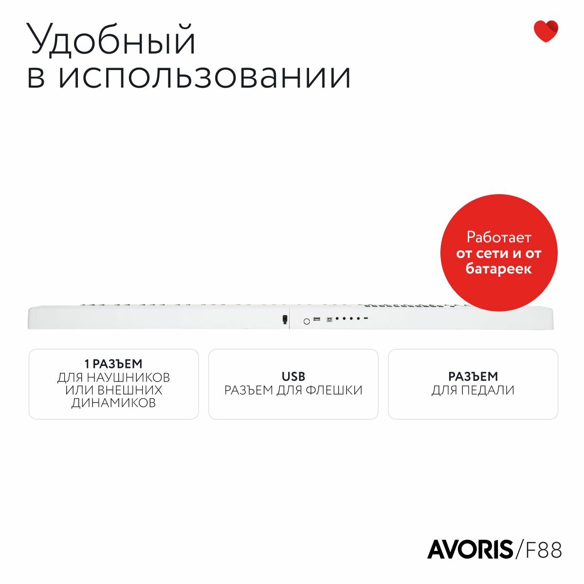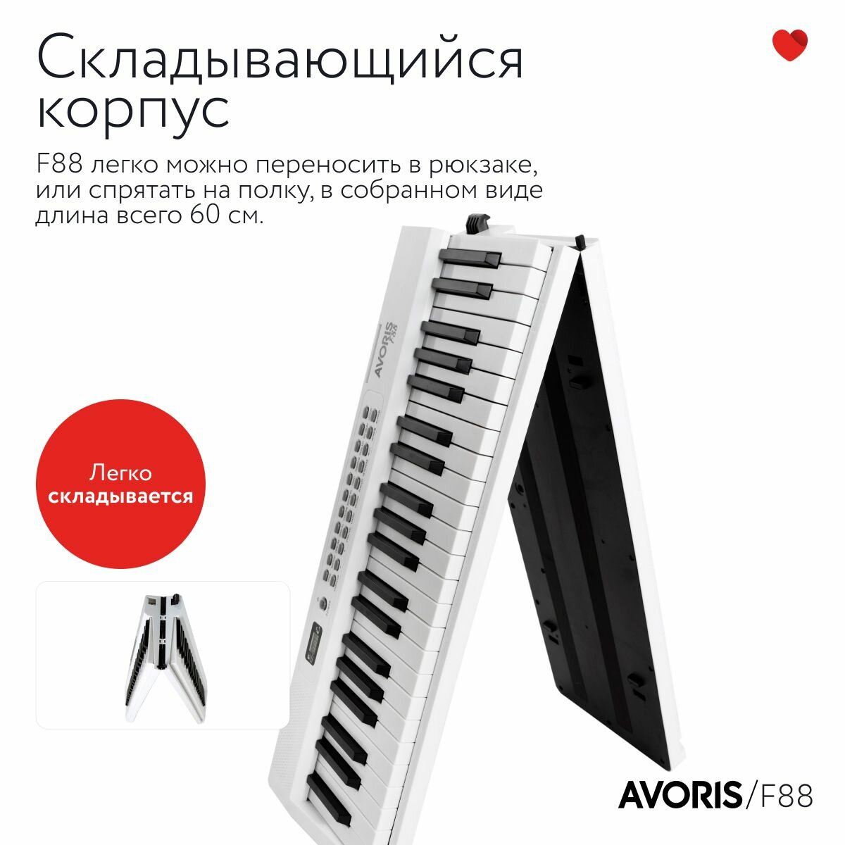 Avoris F88 WH - синтезатор (цифровое пианино) с подсветкой клавиш и с функцией обучения, midi -клавиатура, белый цвет интересное: