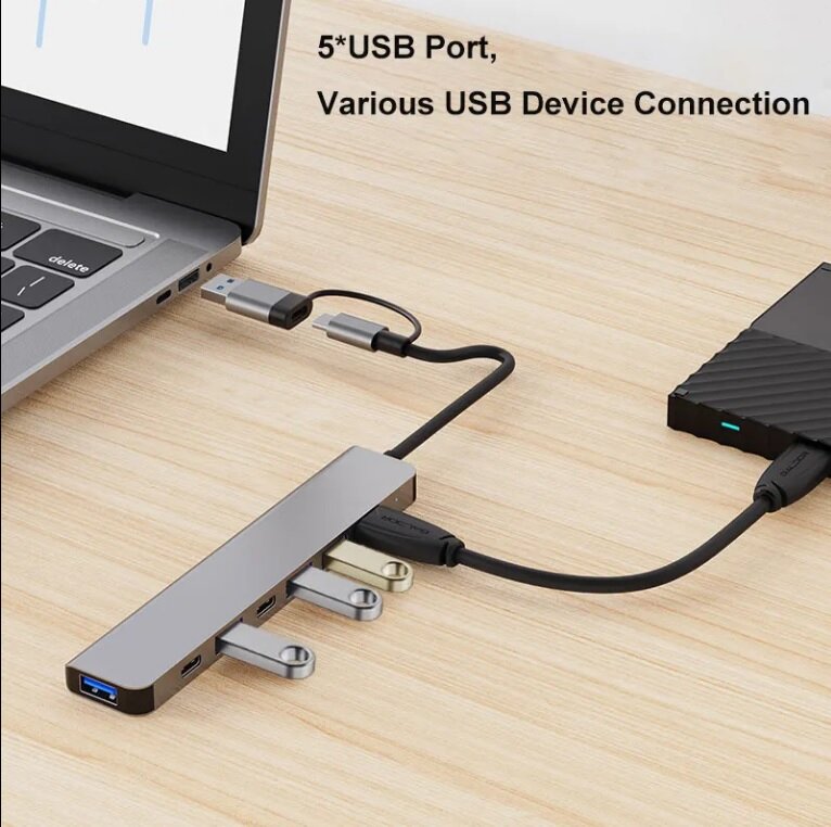 Хаб/концентратор 7 в 1 Type-C/USB 3.0 to 5x USB 2.0&3.0 / 1x Type-c(USB-C) / 1x Power(питание), с индикатором LED интересное:
