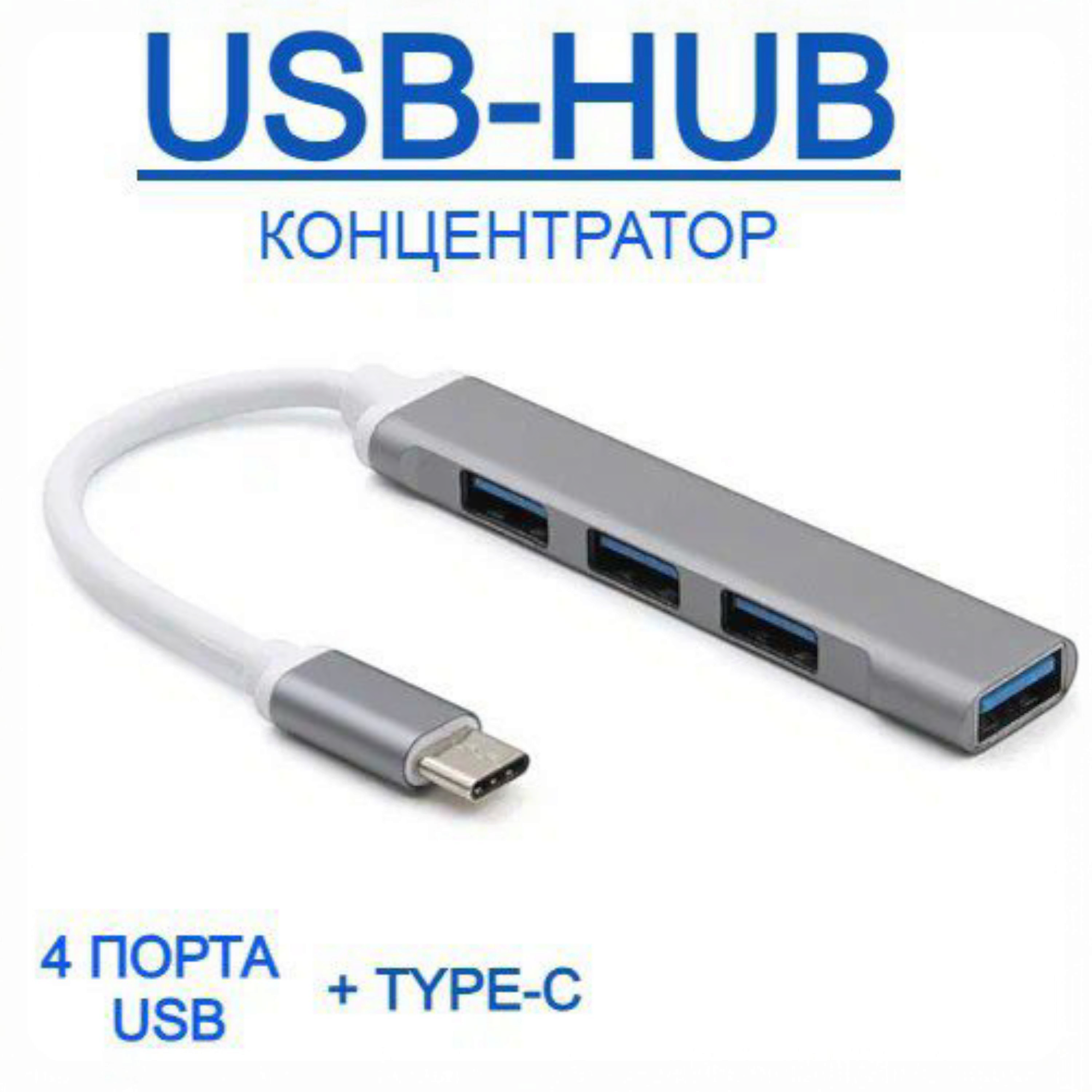 USB-хаб Разветвитель Type-C с 4 портами USB 3,0, USB 3,0, 5 Гбит/с серый металлик интересное: