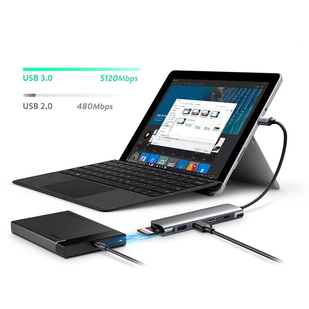 Ugreen CM195 (70410) USB-C to 3 Ports USB3.0-A Hub + HDMI + TF/SD space grey usb хаб интересное: