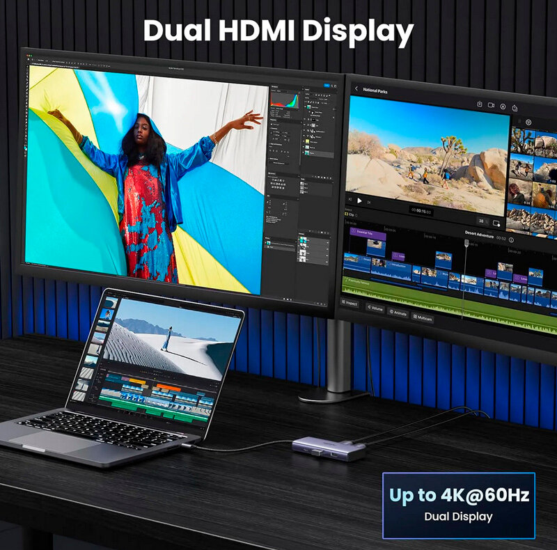 Конвертер UGREEN CM498 (15852) USB-C to2*USB-A 3.0+USB-C 3.0+2*HDMI+PD интересное: