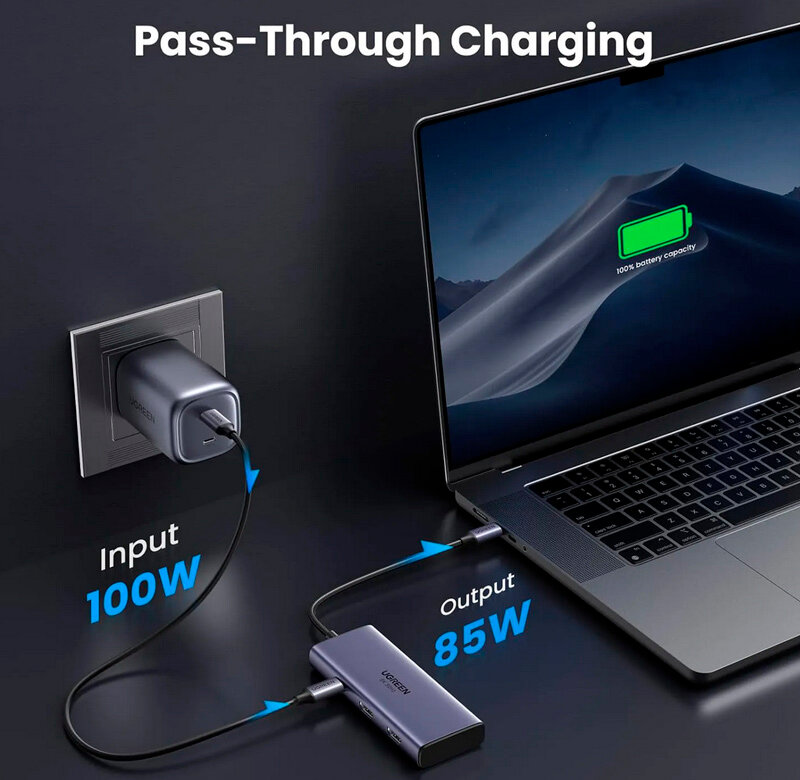 | Дополнительная информация | Конвертер UGREEN CM498 USB-C to 2USB-A 3.0+USB-C 3.0+2HDMI+PD port предлагает широкий спектр возможностей подключения, включая два порта HDMI, порт USB-C PD мощностью 100 Вт, порт данных USB-C 5 Гбит/с и два порта данных USB-A. Наслаждайтесь двумя дисплеями с разрешением 4K 60 Гц для эффективной многозадачности и творческих рабочих процессов. Обратите внимание, macOS не поддерживает режим MST. Два порта HDMI обеспечивают потрясающее разрешение 8K при 30 Гц с великолепной детализацией и яркими цветами, дополняя ваш визуальный контент. порт USB-C PD поддерживает сквозную зарядку мощностью до 85 Вт. |