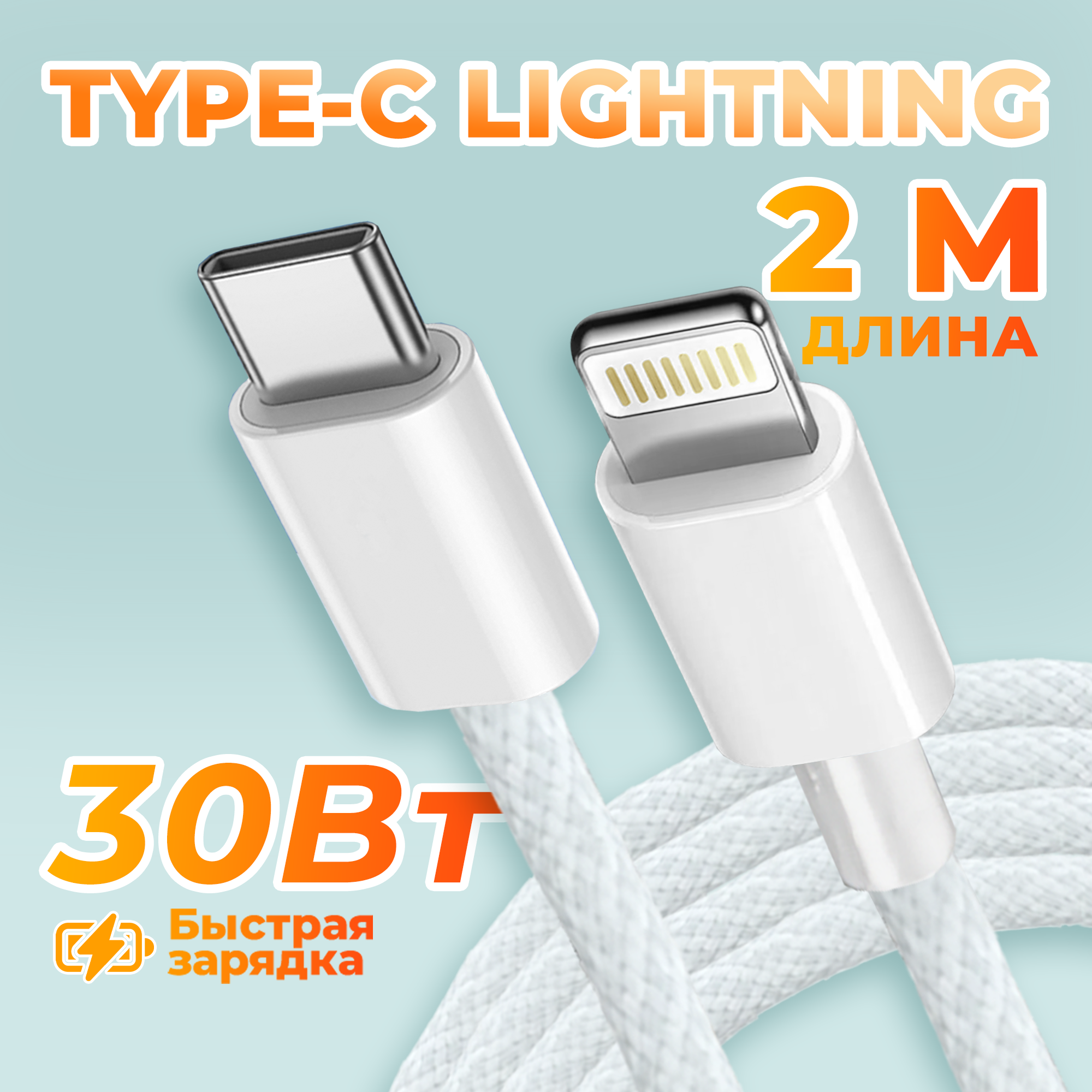 Провод для айфона, WALКЕR, C860, 2 метра, 30W, Type-C-Lightning, поддержка PD, нейлоновый кабель, для смартфона, Iphone/Apple, белый