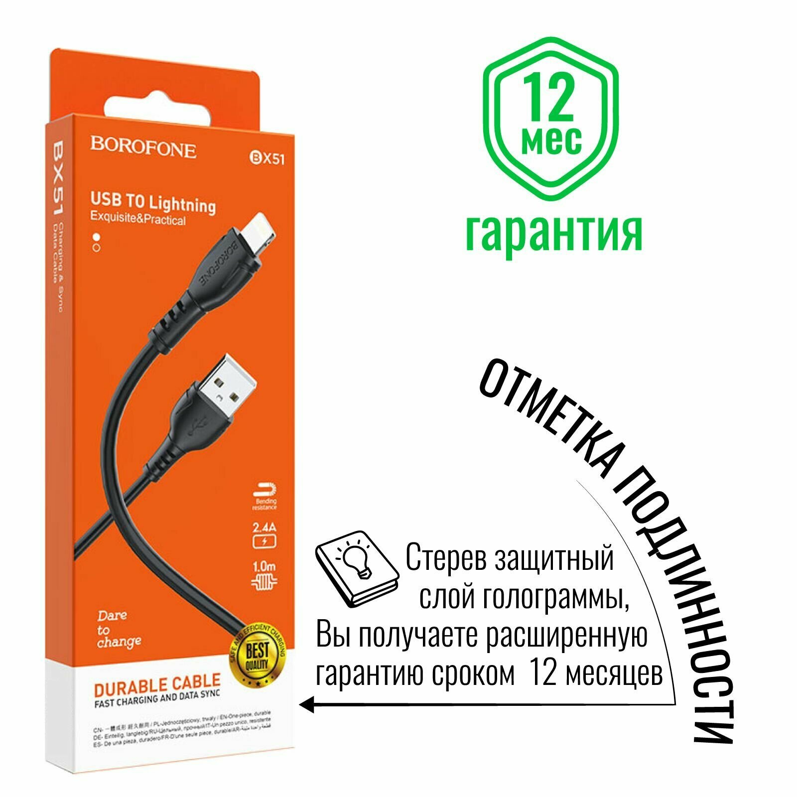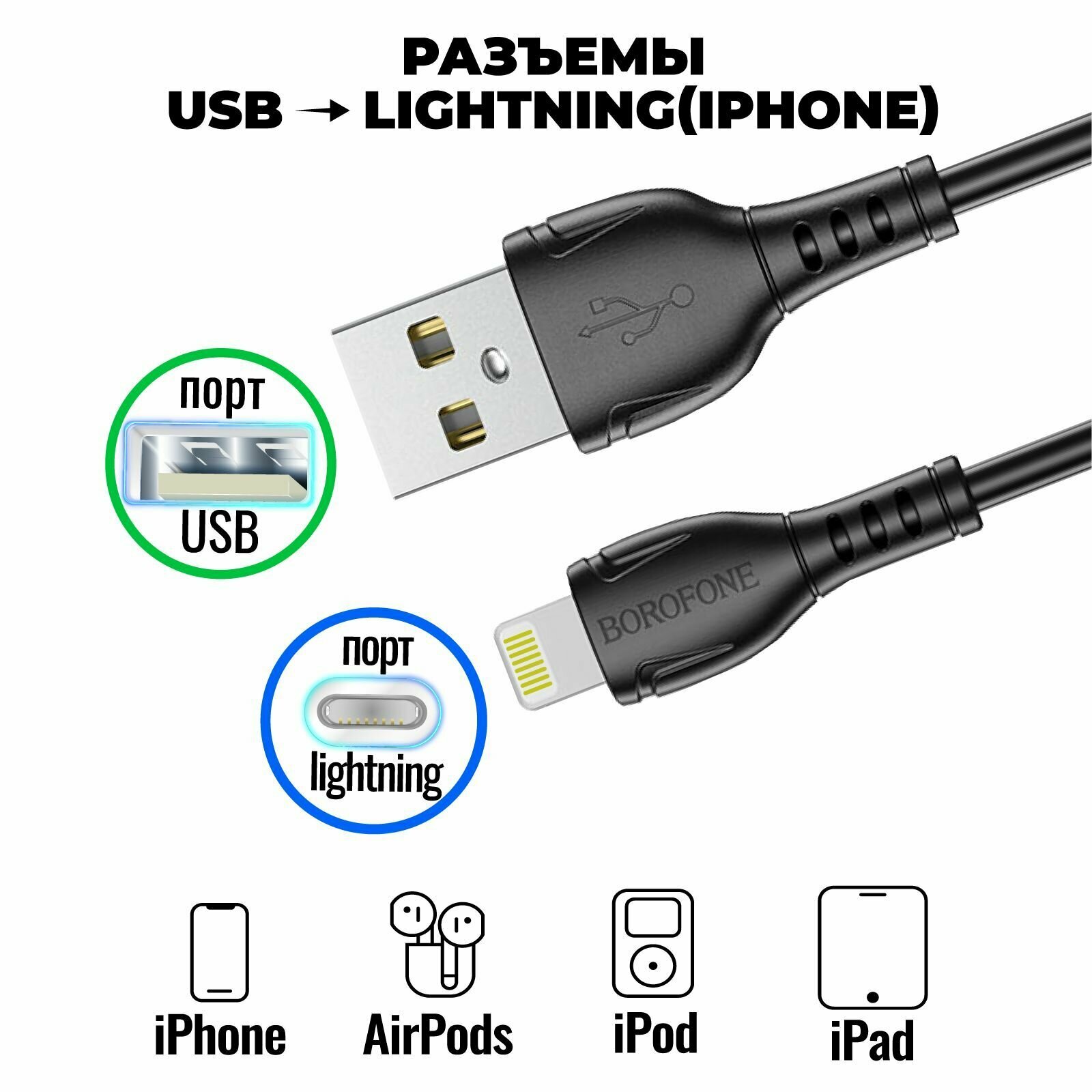 Ниже Вы можете прочитать отзывы на Кабель для iPhone, быстрая зарядка, 1 метр, передача данных / провод для разъема Lightning / BOROFONE BX51, ознакомится с подробными характеристиками, посмотреть интересные обзоры и фотографии на Кабель для iPhone, быстрая зарядка, 1 метр, передача данных / провод для разъема Lightning / BOROFONE BX51.