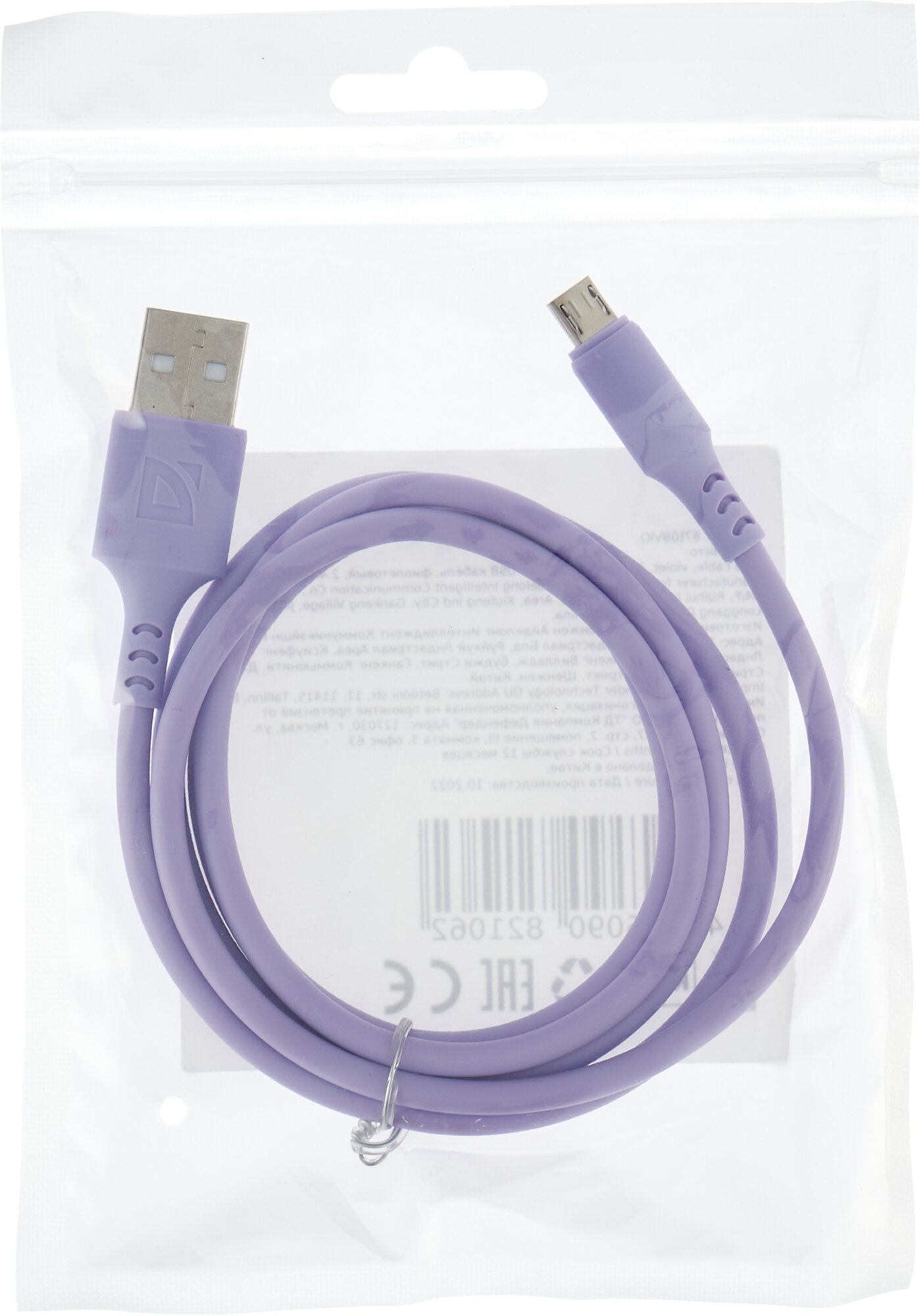 USB кабель Defender F207 Micro Фиолетовый, 1м, 2.4А, силикон, пакет интересное: