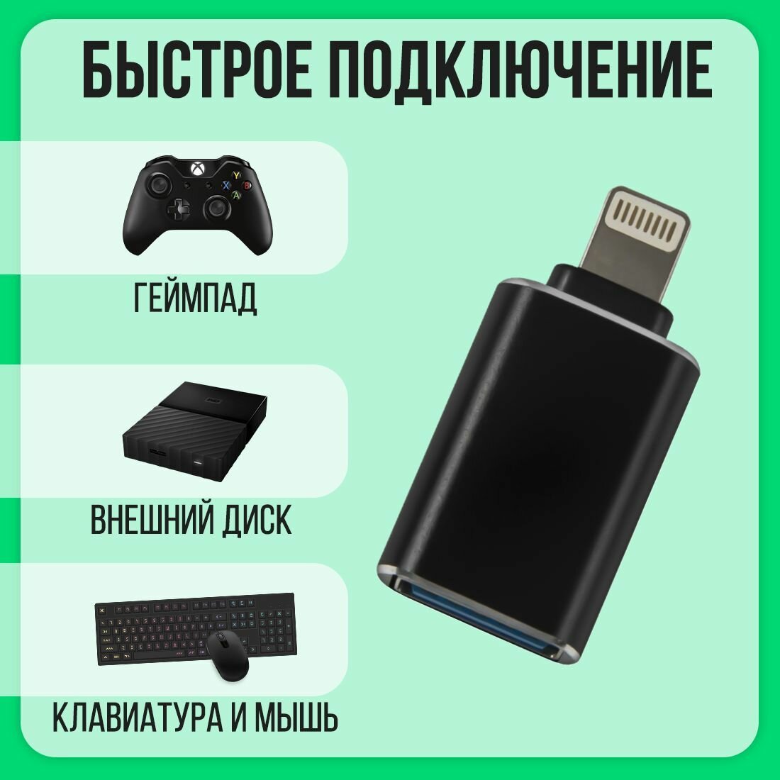 Переходник/ Адаптер-переходник USB 3.0(мама/вход) на Lightning 8 pin(папа/выход), OTG для Apple iPhone, iPad, iPod, для Флешек, TLM чёрный металлик интересное: