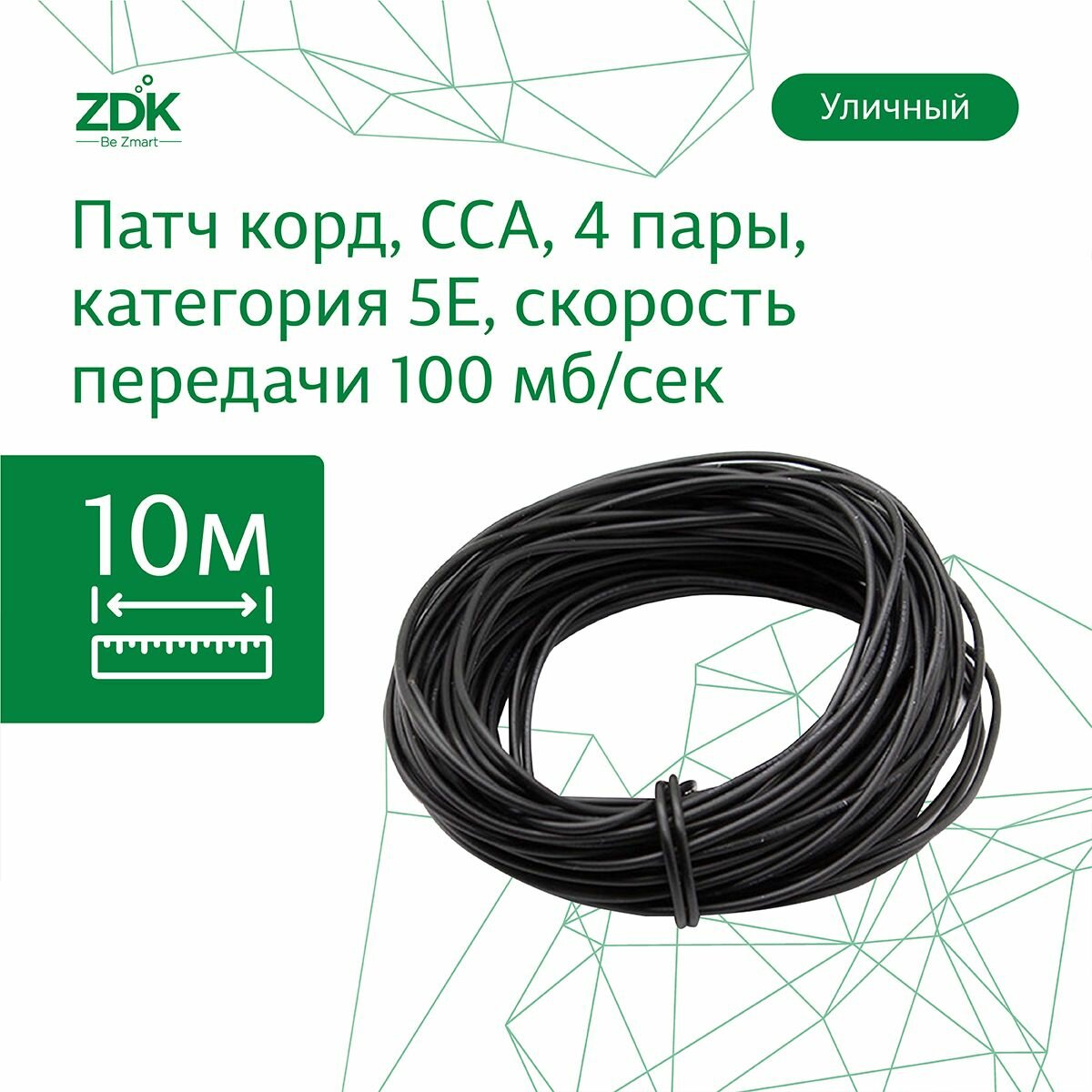 LAN интернет кабель витая пара ZDK Уличный CCA (10 метров) цвет черный