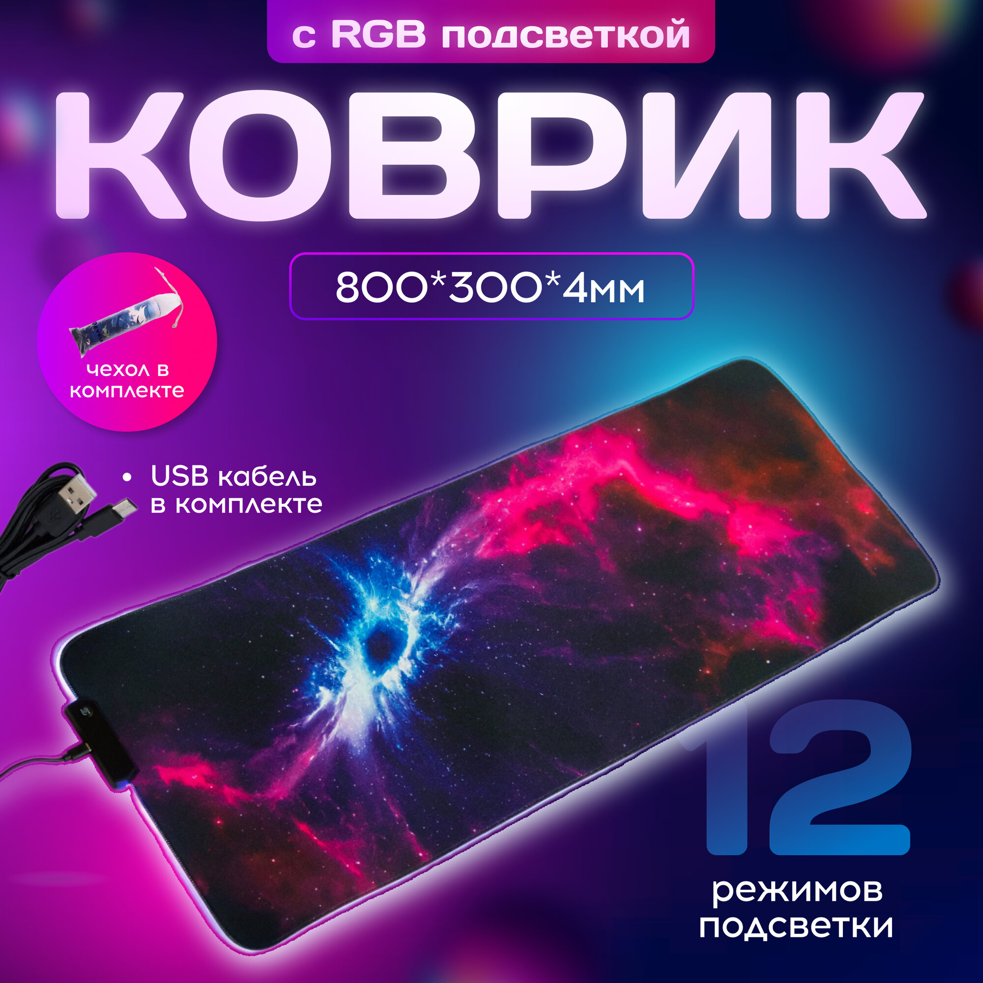 Коврик компьютерный / RGB подсветка / Планеты / 800х300х4 мм