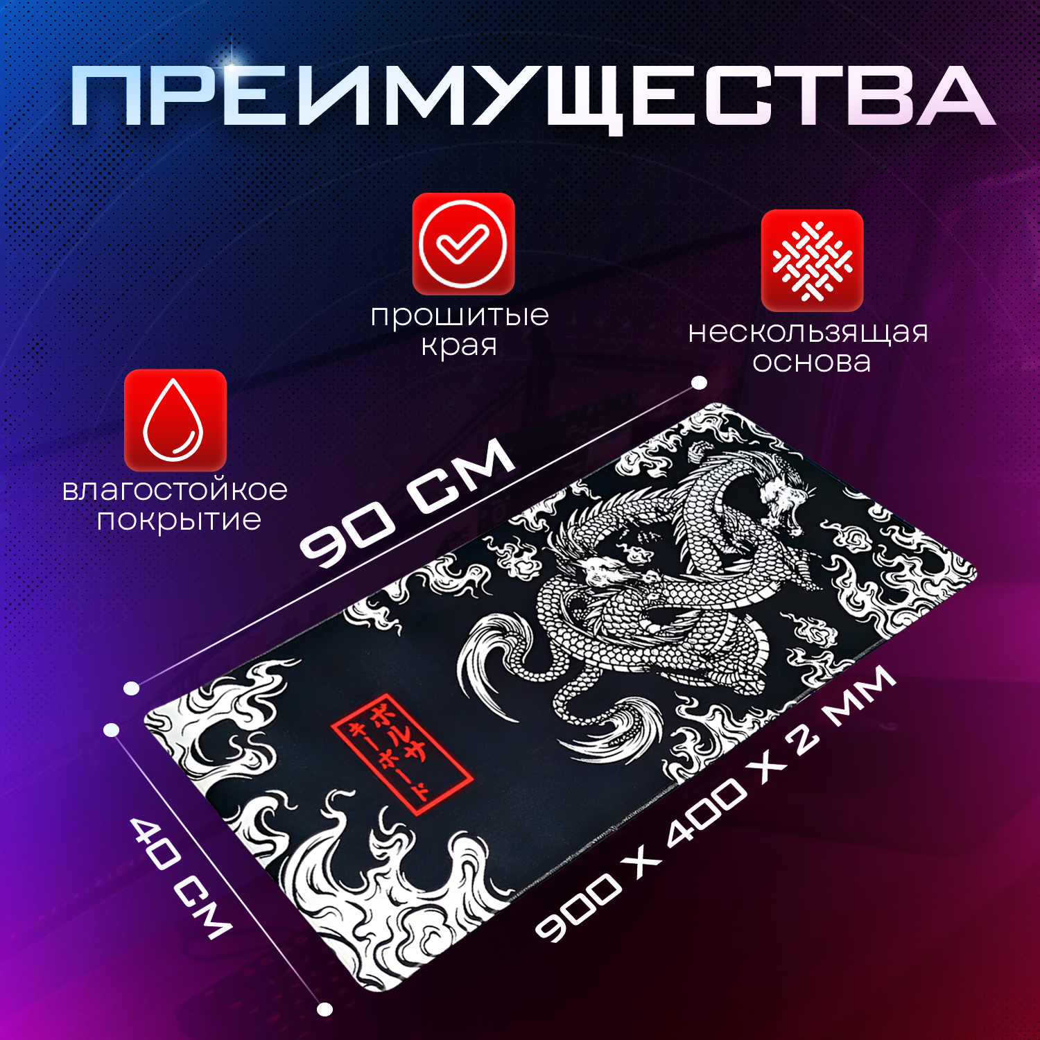 Купить Коврик для мыши игровой большой, Дракон 900x400x2, XXXL