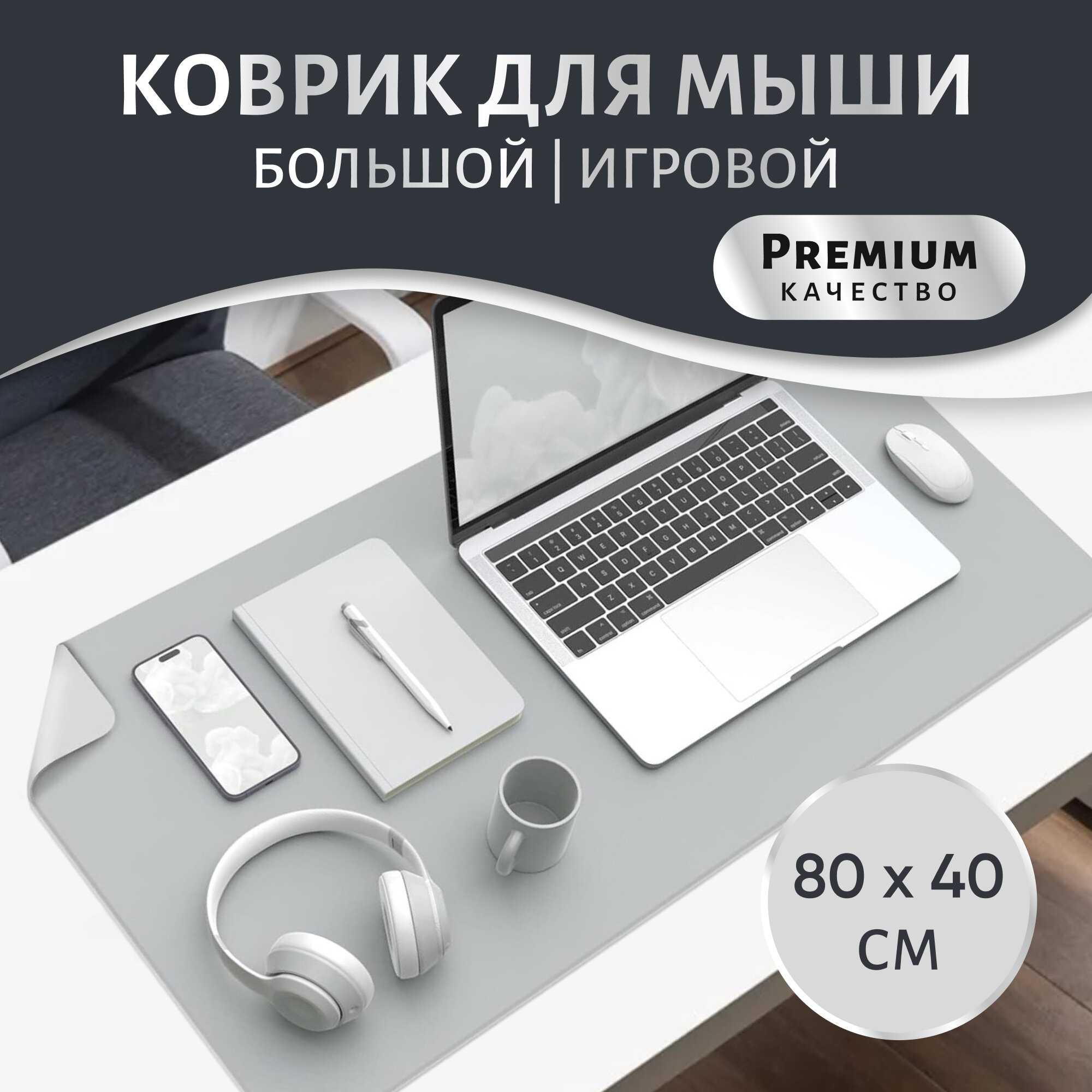 Купить Игровой компьютерный коврик для мыши и клавиатуры, прорезиненный подарок, 80х40см, серый