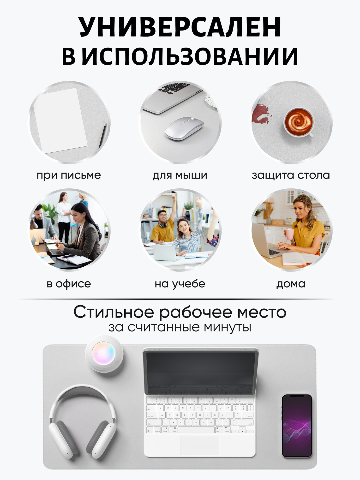 Игровой компьютерный коврик для мыши и клавиатуры, 80х40см, черный