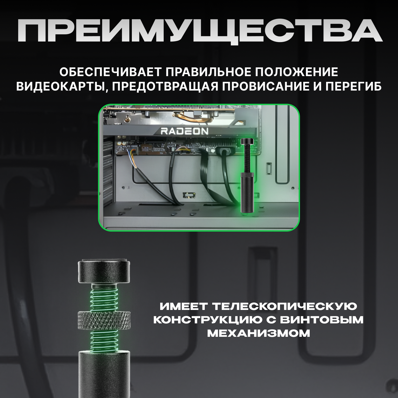 Подставка кронштейн для видеокарты - винтовая телескопическая 50-80mm черная интересное: