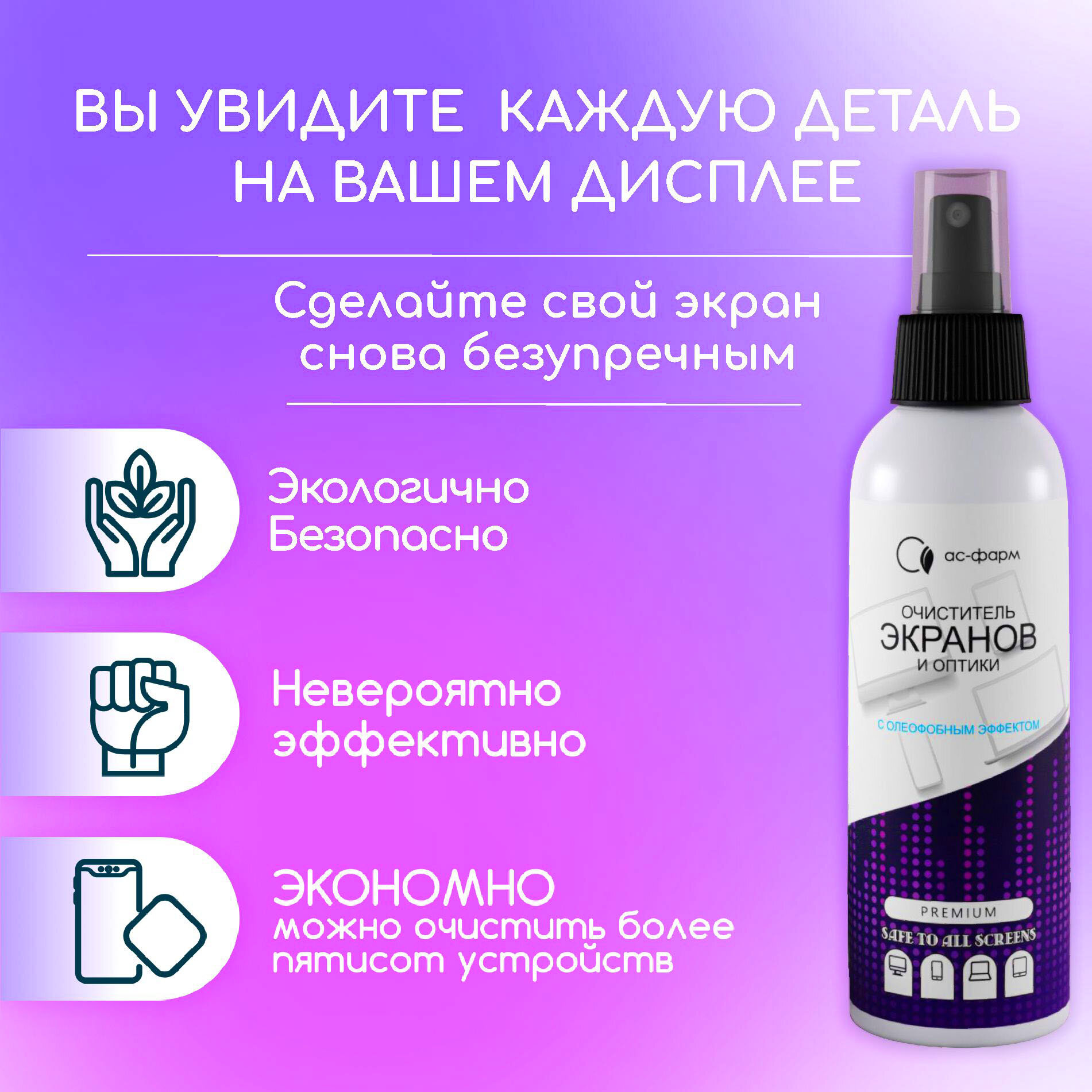 Спрей очиститель для мониторов, экранов, оргтехники и оптики, «АС-Фарм», 200 мл, 2 шт, с олеофобным покрытием интересное: