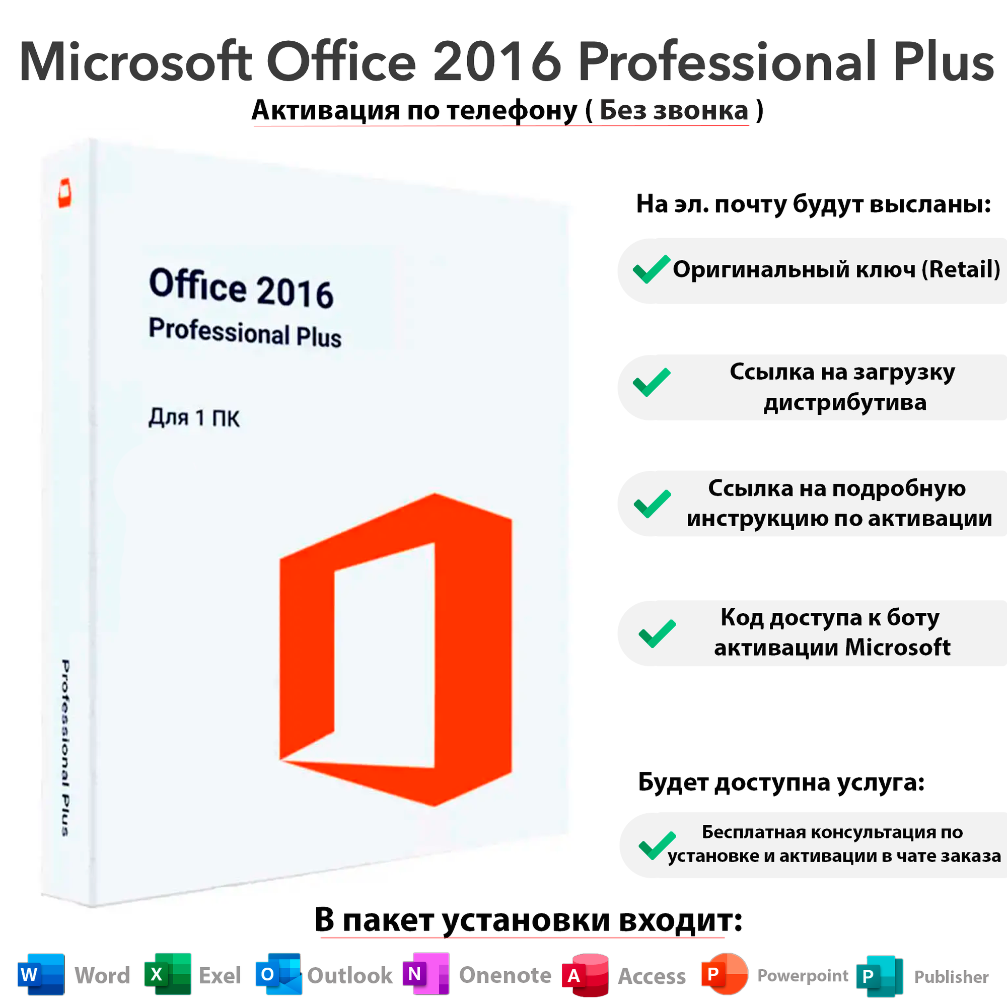 Купить Microsoft Office 2016 Professional Plus - 32/64 бит, Retail, Мультиязычный, Активация по телефону