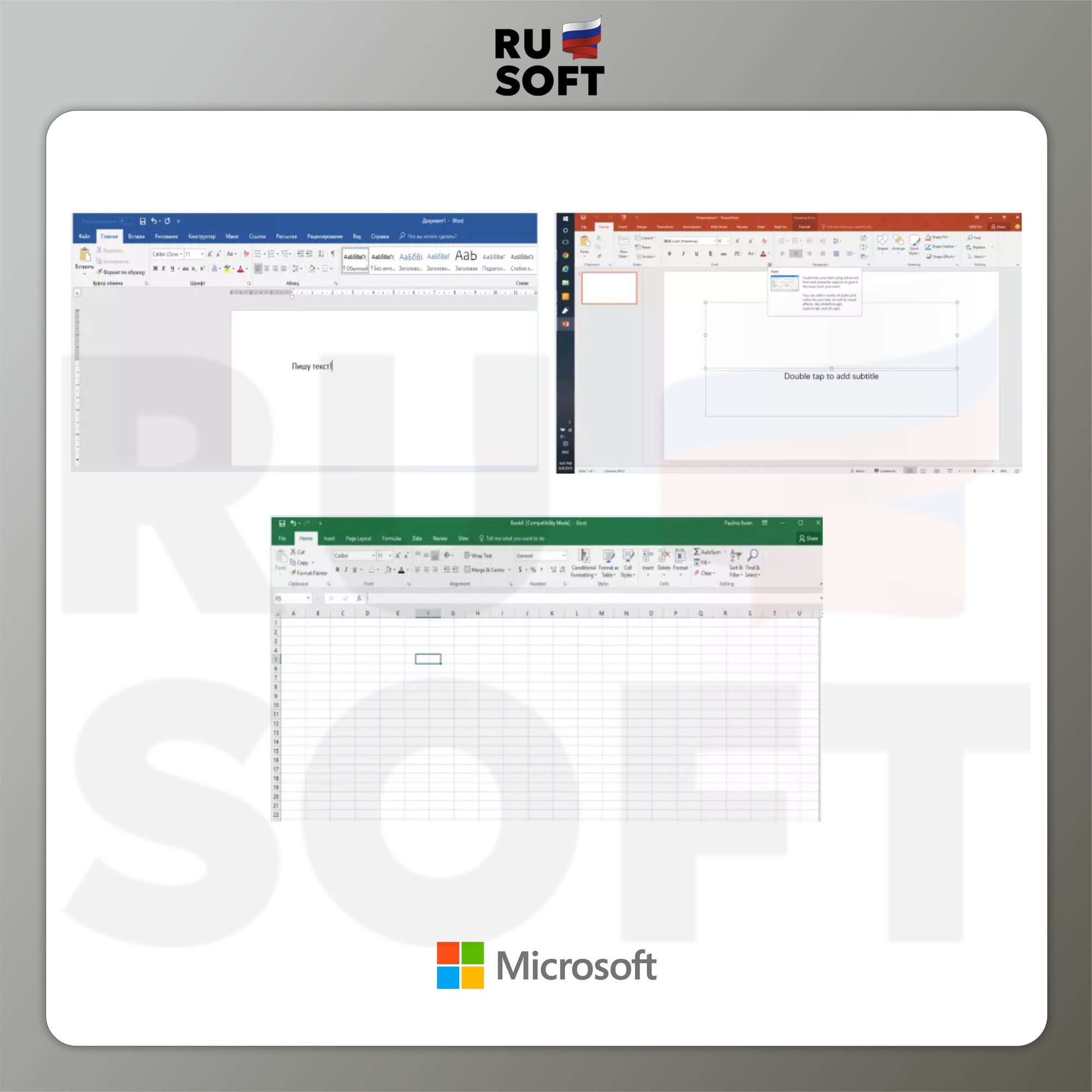 | Состав пакета | Microsoft Word, Microsoft Excel, Microsoft PowerPoint, Microsoft Outlook, Microsoft OneNote, Microsoft Access, Microsoft Publisher. Инструкция, официальный дистрибутив Microsoft |