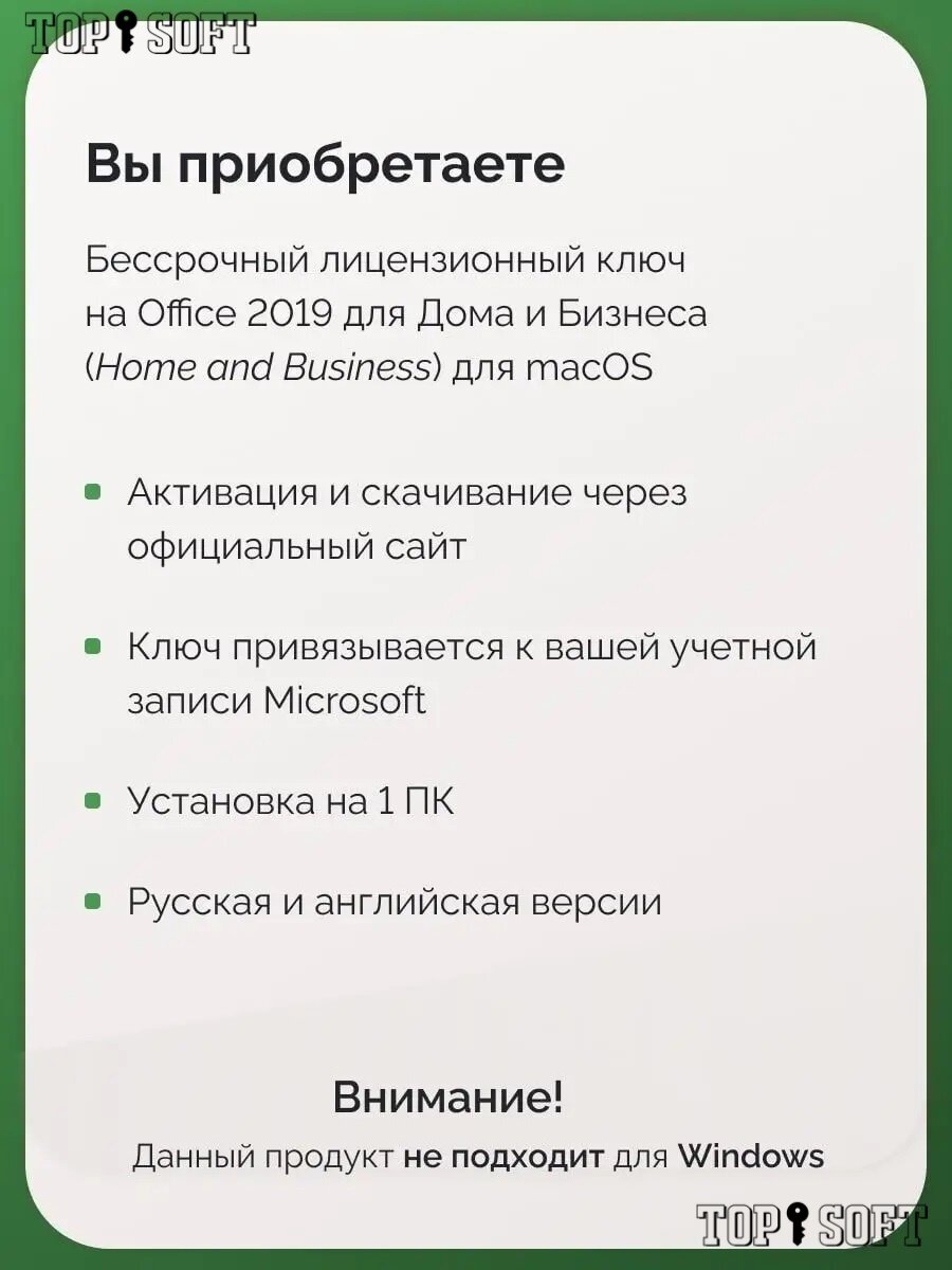 Ниже Вы можете прочитать отзывы на Microsoft Office 2019 Home and Business для MacOS (Привязка к учетной записи, Бессрочная лицензия для 1 устройства), ознакомится с подробными характеристиками, посмотреть интересные обзоры и фотографии на Microsoft Office 2019 Home and Business для MacOS (Привязка к учетной записи, Бессрочная лицензия для 1 устройства).