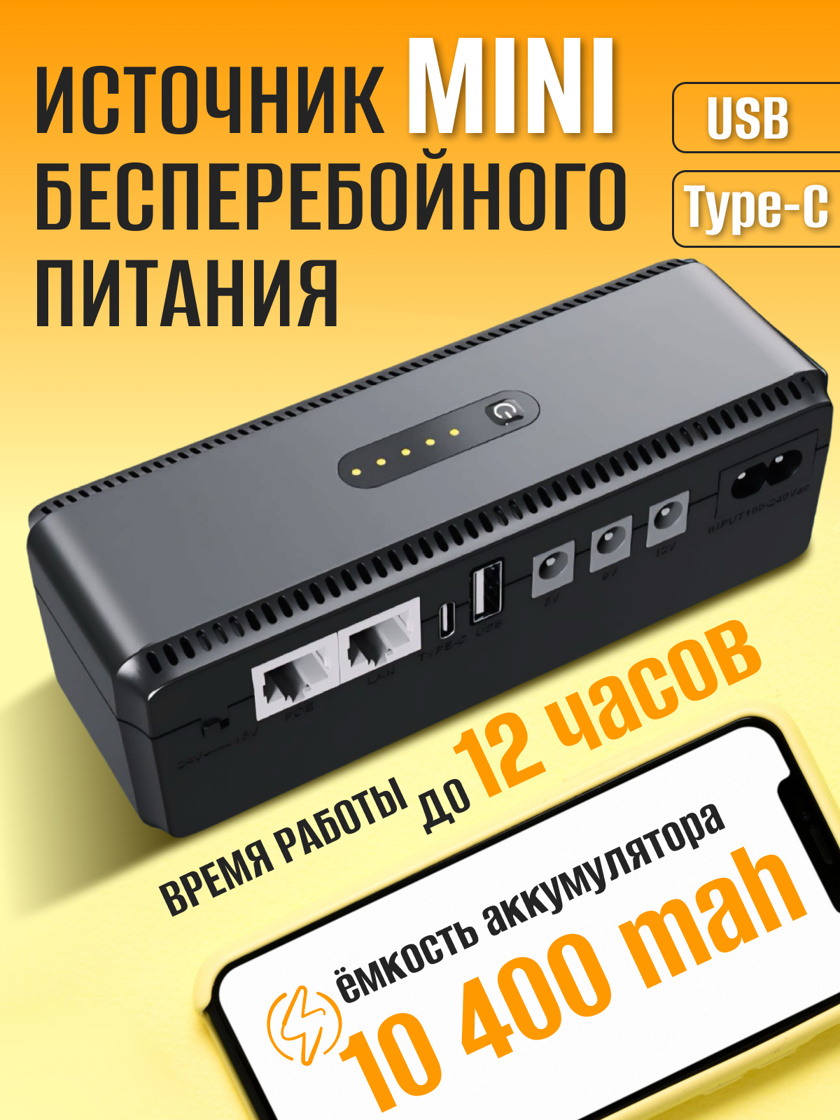 Источник бесперебойного питания с аккумулятором ИБП для дома 10400 мАч интересное: